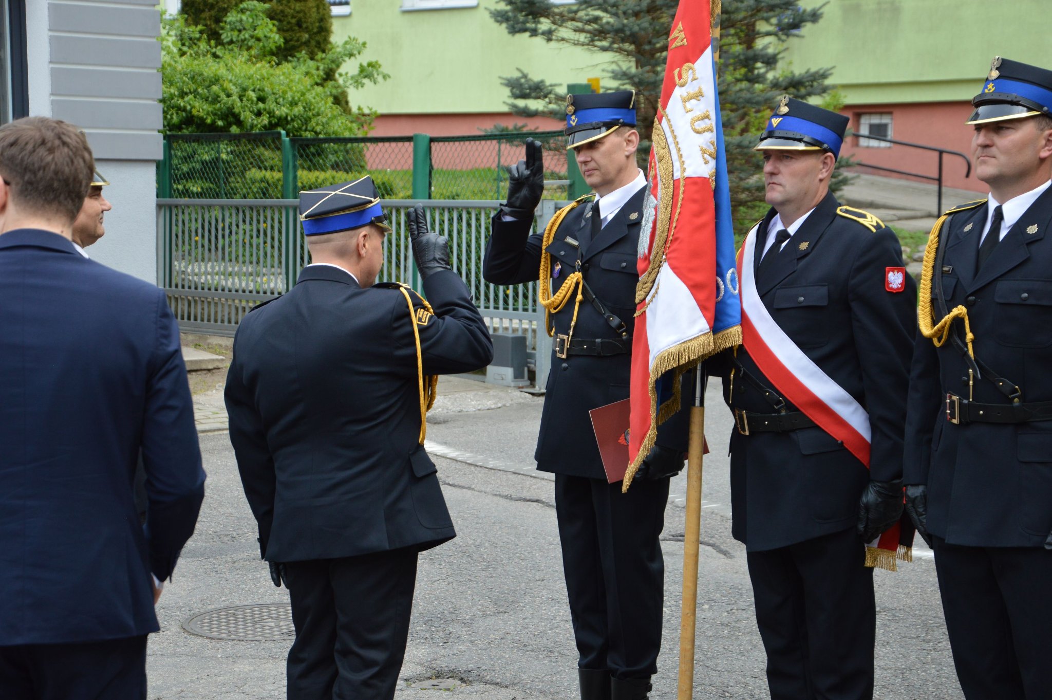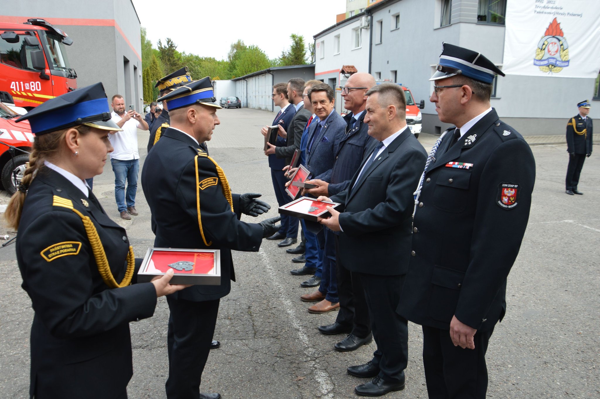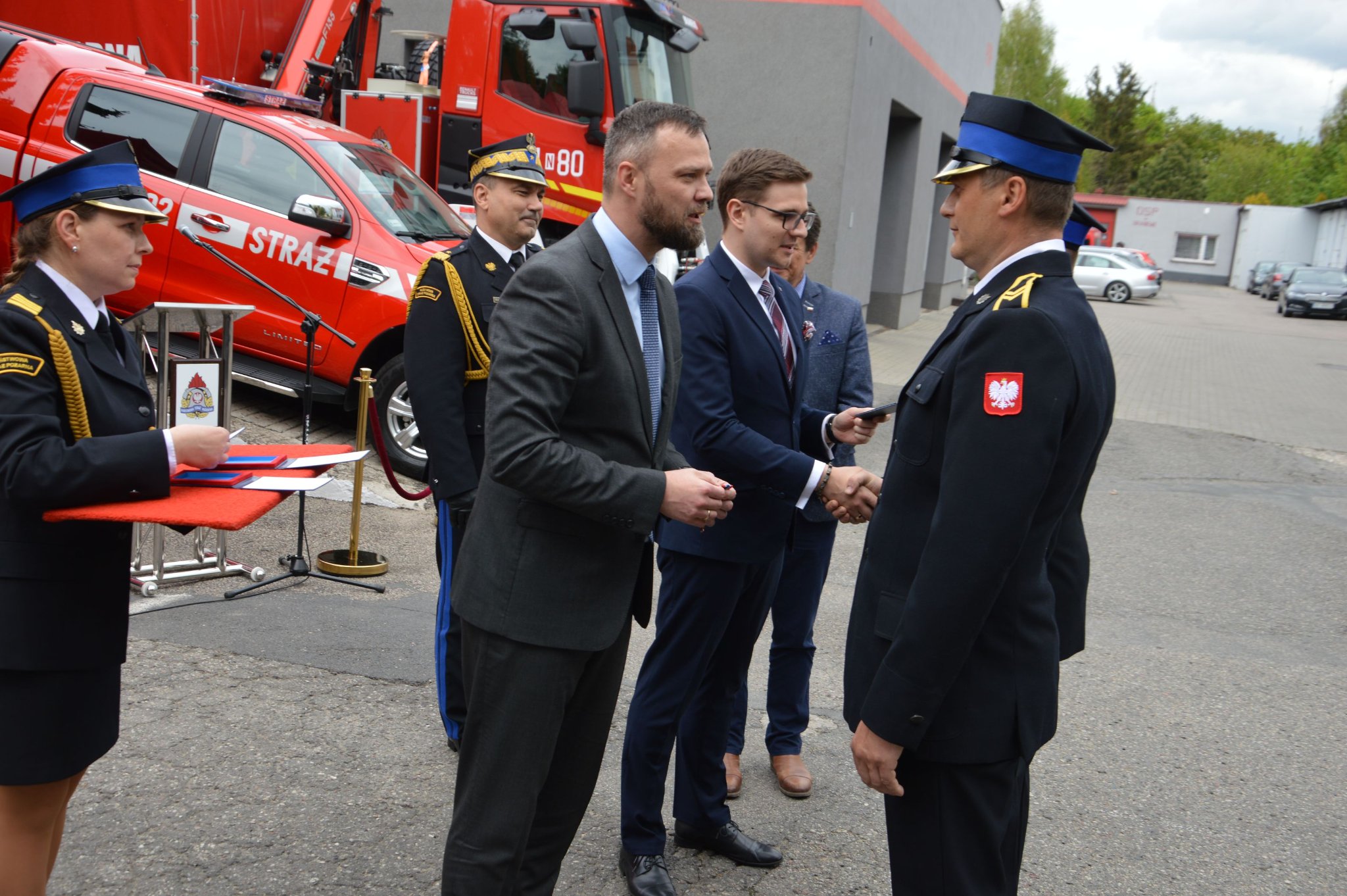 Podczas uroczystości Pan V-ce Wojewoda Warmińsko – Mazurski Piotr Opaczewski oraz Warmińsko – Mazurski Komendant Wojewódzki Państwowej Straży Pożarnej nadbryg. Tomasz Komoszyński wręczyli przyznaną przez Ministra Spraw Wewnętrznych i Administracji Brązową Odznakę Zasłużony dla Ochrony Przeciwpożarowej”.