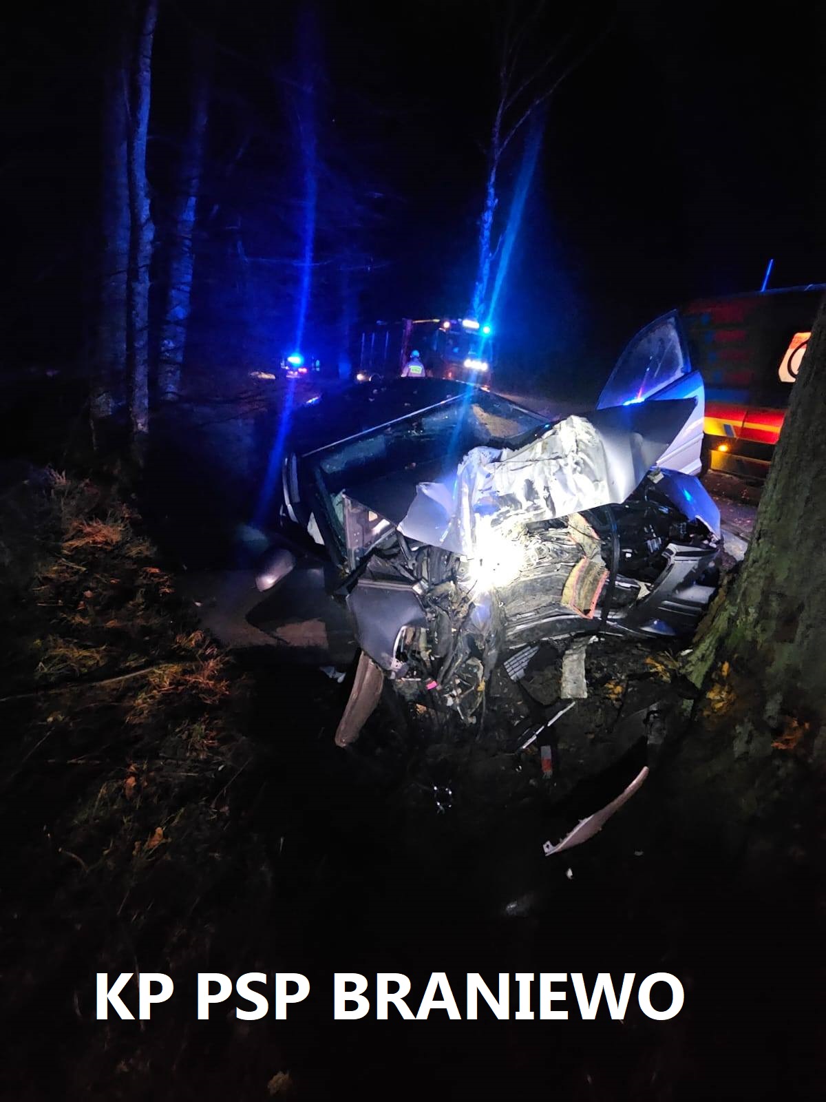 Do zdarzenia doszło na drodze powiatowej pomiędzy miejscowościami Marcinkowo – Lubnowo. Kierujący audi A3 stracił panowanie nad pojazdem, które uderzyło czołowo w przydrożne drzewo.