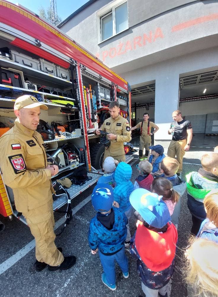 Strażacy pokazali całe wyposażenie wozów strażackich, opowiedzieli o trudnej i ciężkiej pracy strażaka, a także uświadomili jakie zagrożenia mogą spotkać najmłodszych podczas zbliżających się wakacji.