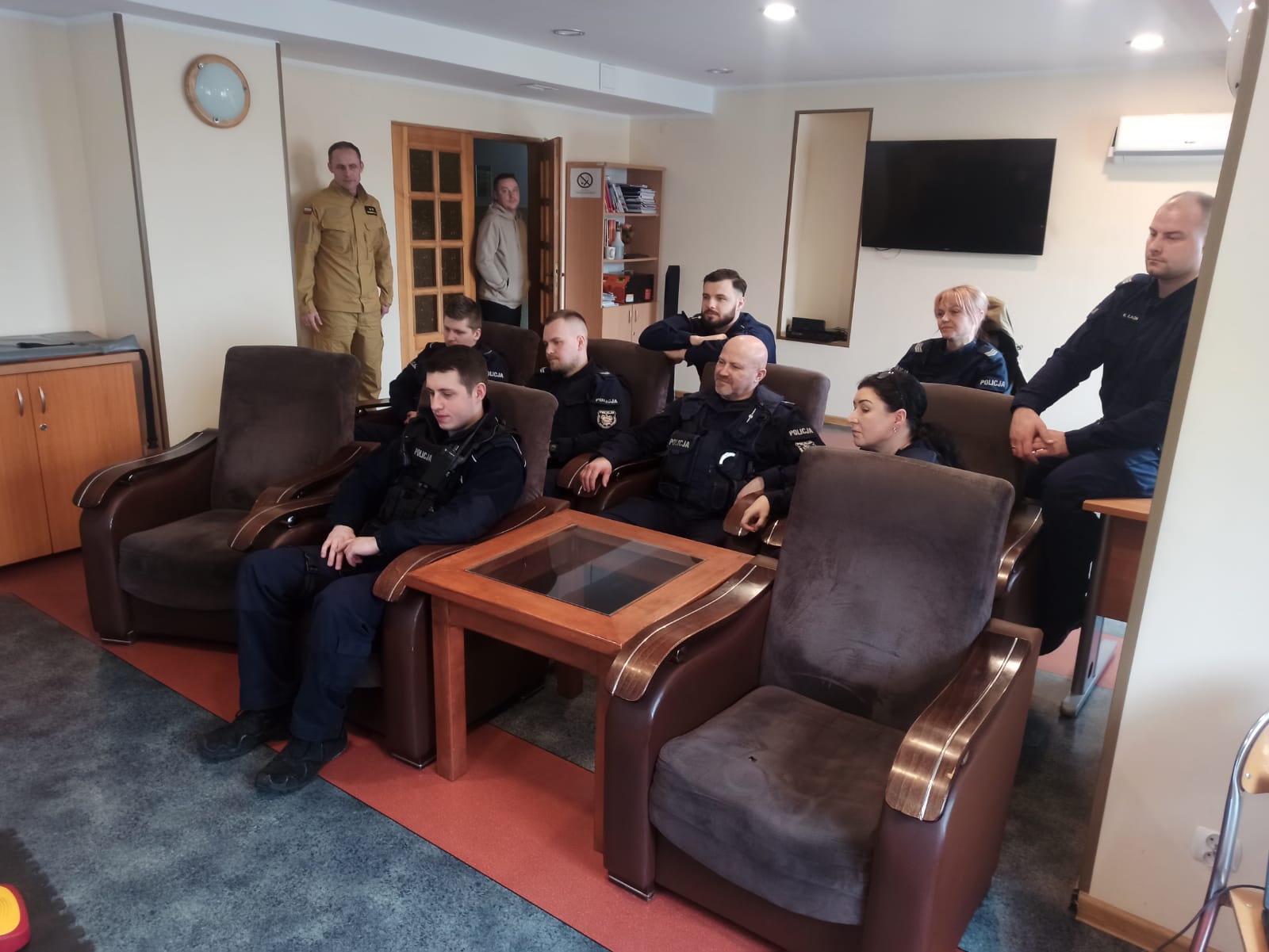 Strażak – instruktor Mateusz Ostrowski przeprowadził zajęcia, na których funkcjonariusze ćwiczyli, między innymi prowadzenie resuscytacji krążeniowo-oddechowej. Policjanci ćwiczyli na specjalnie do tego celu przygotowanych fantomach.