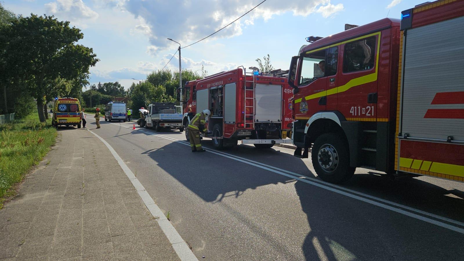 Na miejsce zdarzenia drogowego skierowano strażaków z Państwowej Straży Pożarnej w Braniewie, strażaków ochotników z OSP Frombork, zespół ratownictwa medycznego oraz funkcjonariuszy policji.