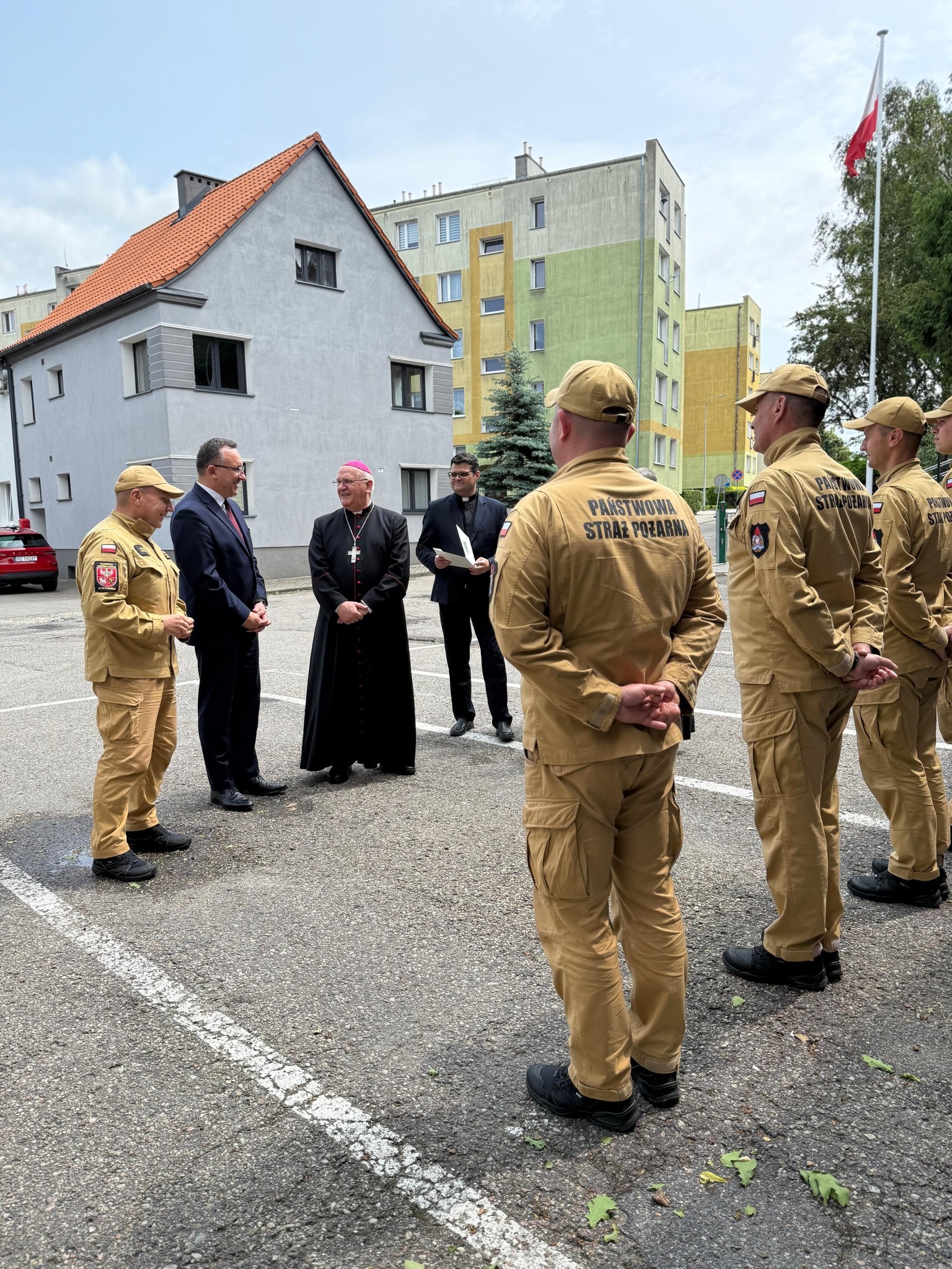 Jego Ekscelencja Metropolita Warmiński odwiedził również braniewskich strażaków z Komendy Powiatowej Państwowej Straży Pożarnej w Braniewie, przekazując serdeczne podziękowania za profesjonalizm, otwartość i bezcenny wkład w organizację tego historycznego wydarzenia.