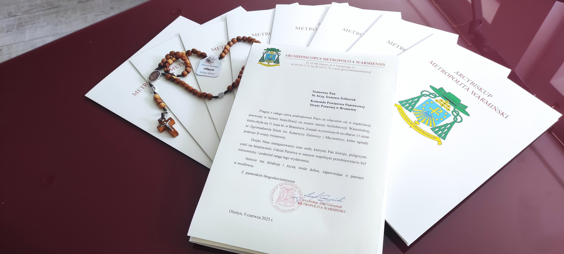 W poniedziałek 9 czerwca 2025 roku gościliśmy Jego Ekscelencję Metropolitę Warmińskiego Arcybiskupa Józefa Górzyńskiego, który przyjechał specjalnie, aby osobiście podziękować za zaangażowanie w organizację uroczystości beatyfikacyjnych 15 Sióstr Katarzynek, jakie 31 maja odbyły się w Braniewie.