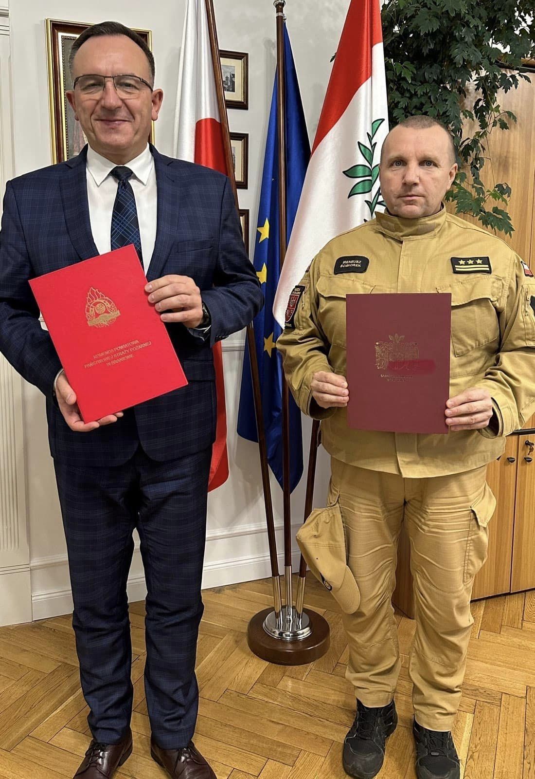 Kolejne wsparcie dla Komendy Powiatowej Państwowej Straży Pożarnej w Braniewie popłynęło tym razem z Urzędu Miasta Braniewa. We wtorek w siedzibie urzędu Burmistrz Miasta Braniewa Tomasz Sielicki wspólnie z komendantem powiatowym PSP w Braniewie st. bryg. Ireneuszem Ścibiorkiem przy kontrasygnacie Skarbnik – Katarzyny Mirkowskiej podpisali porozumienie dotyczące dofinansowania ochrony przeciwpożarowej – wsparcia dla KP PSP Braniewo w kwocie 30 tyś. złotych.