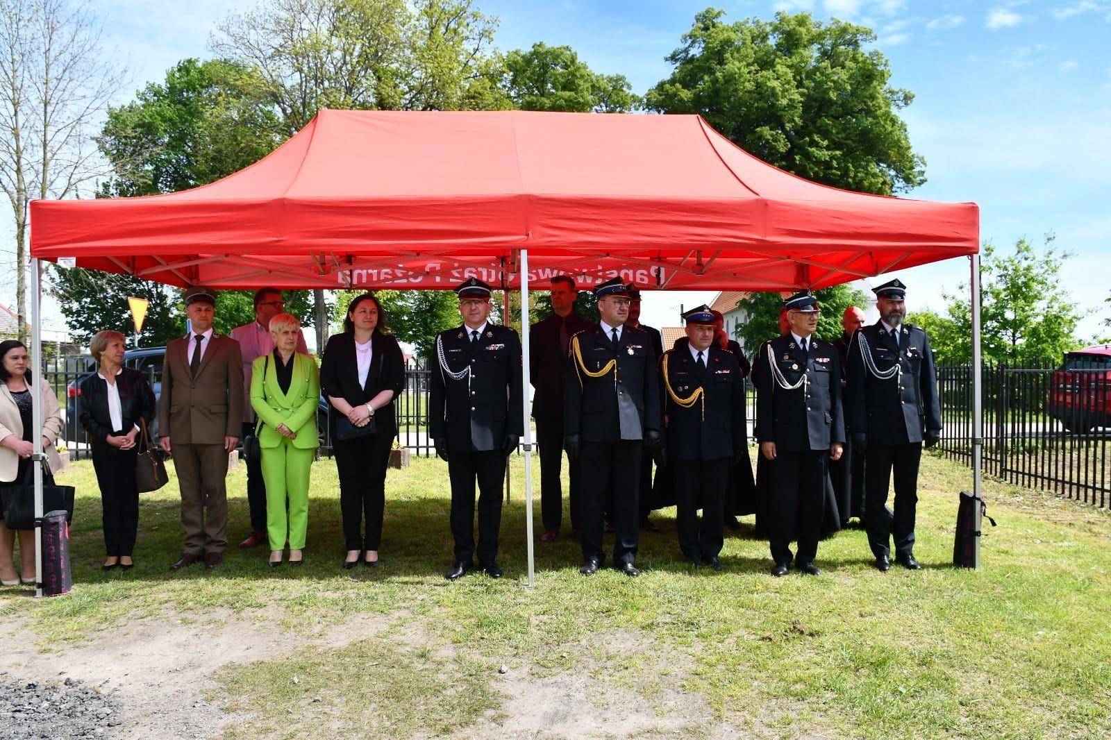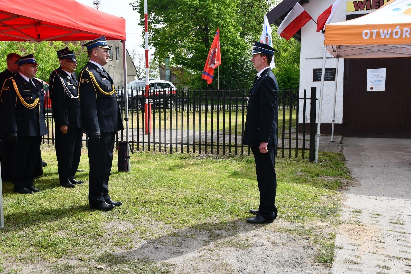 Następnie w pobliżu remizy jednostki OSP w Wielkim Wierznie odbył się uroczysty apel strażacki. Dowódca uroczystości złożył meldunek dla Zastępcy Warmińsko – Mazurskiego Komendanta Wojewódzkiego Państwowej Straży Pożarnej st. bryg. Tomasza Ostrowskiego.