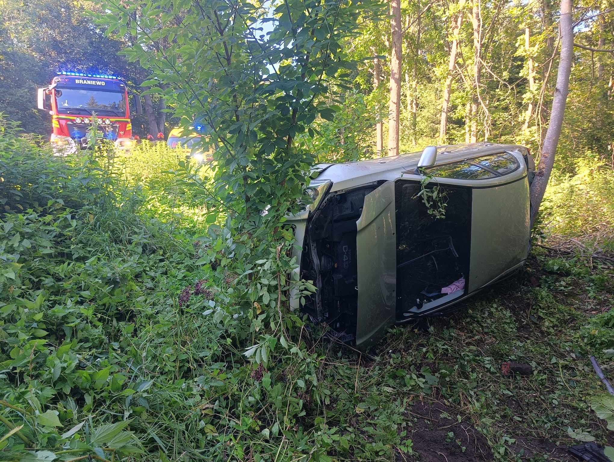 1 września br. około godz. 15:00 funkcjonariusze komendy powiatowej Państwowej Straży Pożarnej w Braniewie zostali skierowani do zdarzenia drogowego z udziałem auta osobowego. Na drodze powiatowej Czosnowo - Szalmia kierująca pojazdem marki Toyota straciła panowanie nad autem i dachowała.
