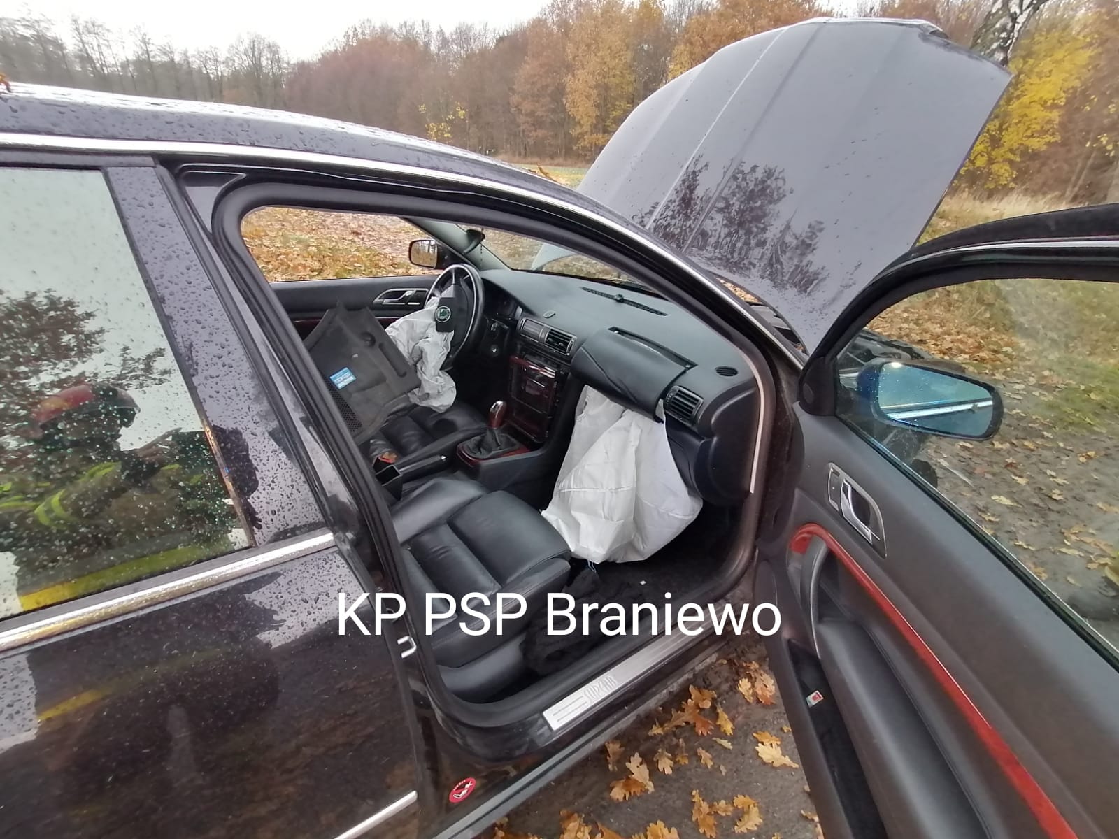 12 listopada br. około godz. 08:00 służba dyżurna Stanowiska Kierowania Państwowej Straży Pożarnej otrzymała zgłoszenie o zdarzeniu drogowym z udziałem auta osobowego. Do zdarzenia doszło w pobliżu miejscowości Wyszkowo gm. Lelkowo.