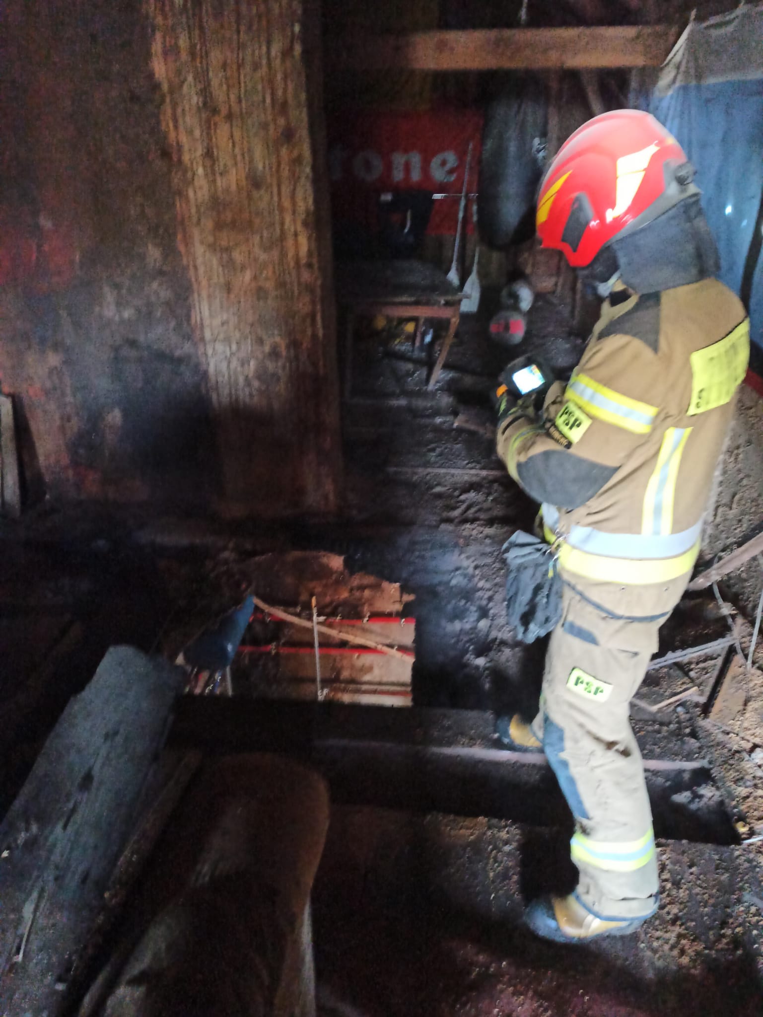 Strażacy szybko zlokalizowali pożar drewnianych elementów konstrukcyjnych podłogi, który powstał w pobliżu pieca centralnego ogrzewania. W trakcie działań usunięto część spalonej podłogi, a z wykorzystaniem kamery termowizyjnej zlokalizowano ukryte zarzewia ognia. Mieszkańcy mogą mówić o szczęściu, gdyż pożar został zauważony w dzień a nie rozwinął się w porze nocnej.