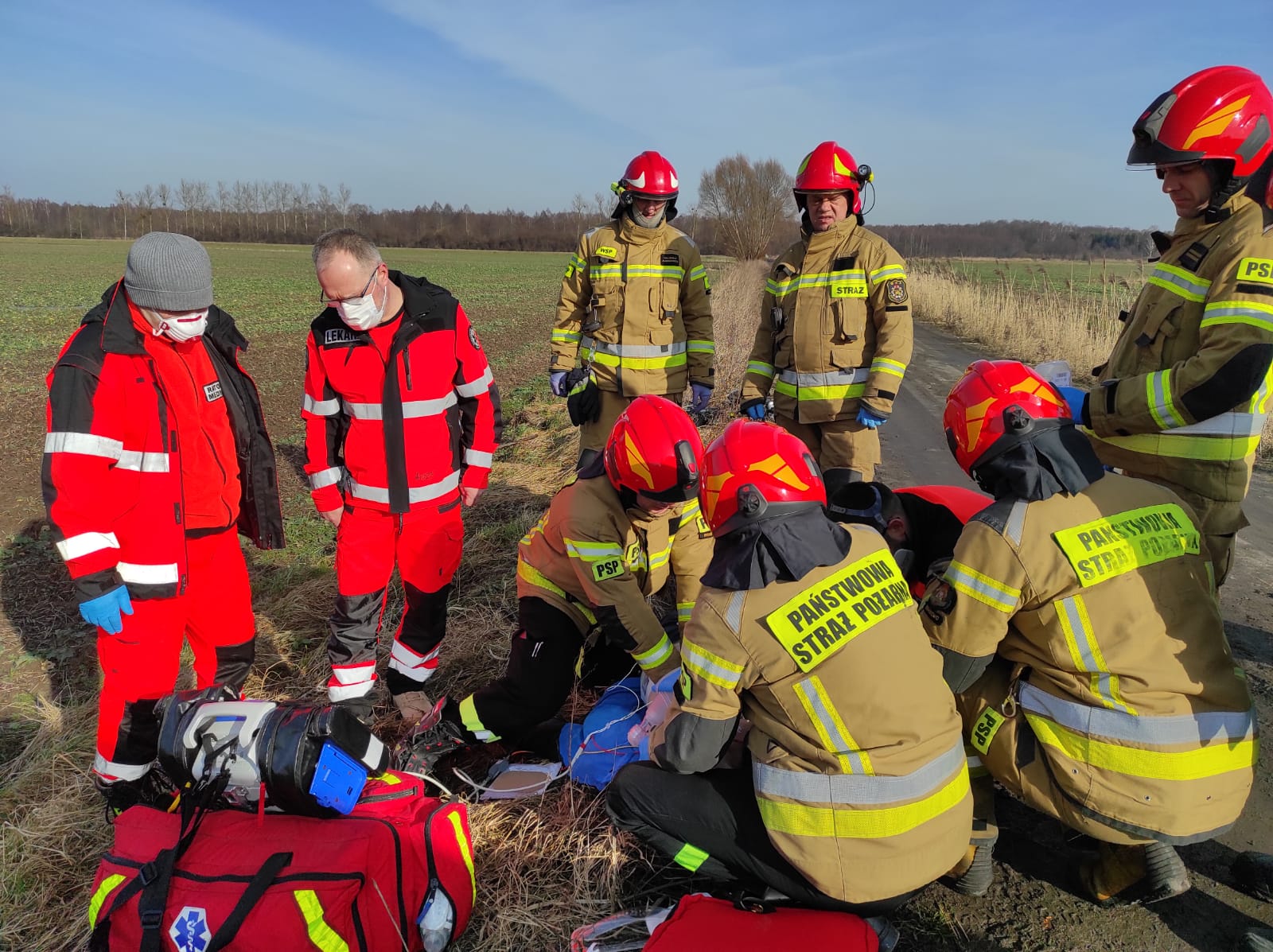 Nieprzytomny mężczyzna leżał na drodze. Po dojeździe służb ratowniczych rozpoczęła się walka o uratowanie jego życia.