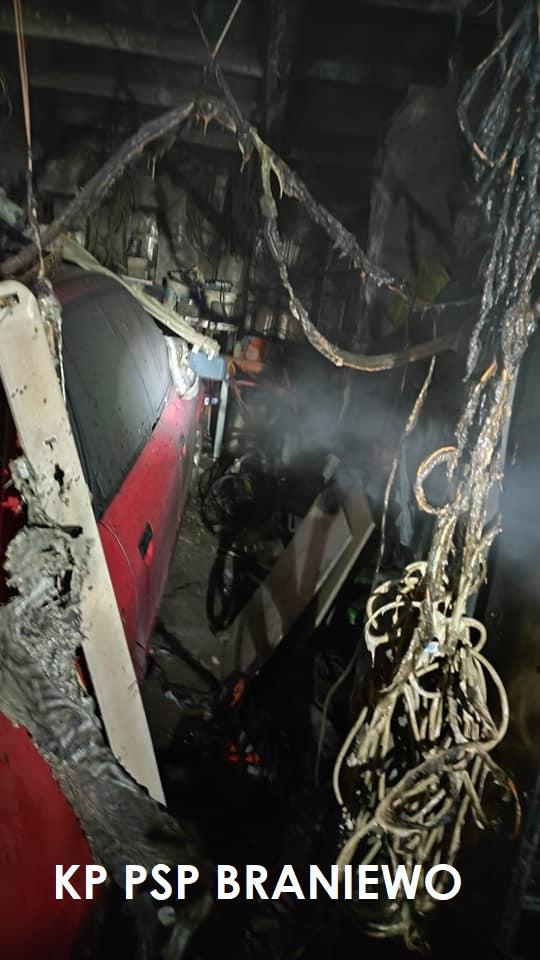 Strażacy oprócz gaszenia palącego się samochodu skupili się również na ograniczeniu ognia aby nie przeniósł się na sąsiednie pomieszczenia.