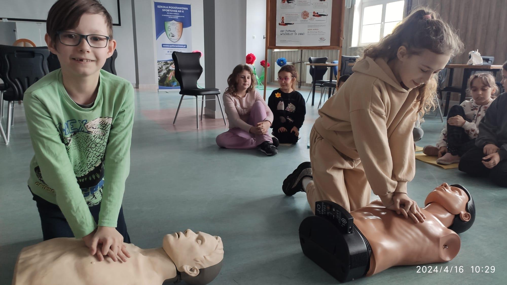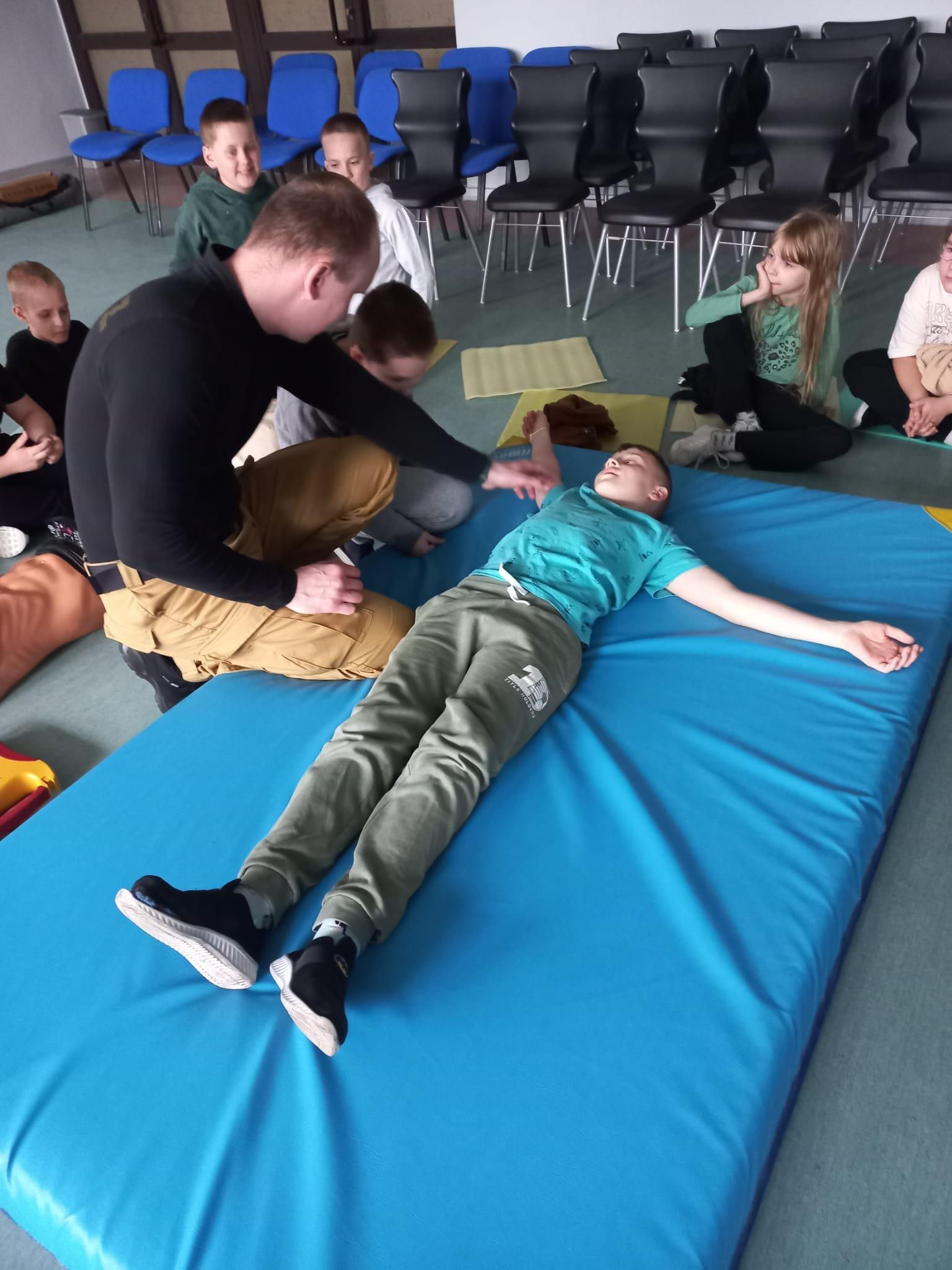 Jak udzielić pierwszej pomocy? Jak zachować się w sytuacji zagrożenia? O tym wszystkim uczyli się uczniowie szkoły podstawowej. Młodzież mogła dowiedzieć się jak korzystać z numerów alarmowych oraz jak skutecznie udzielać pierwszej pomocy.