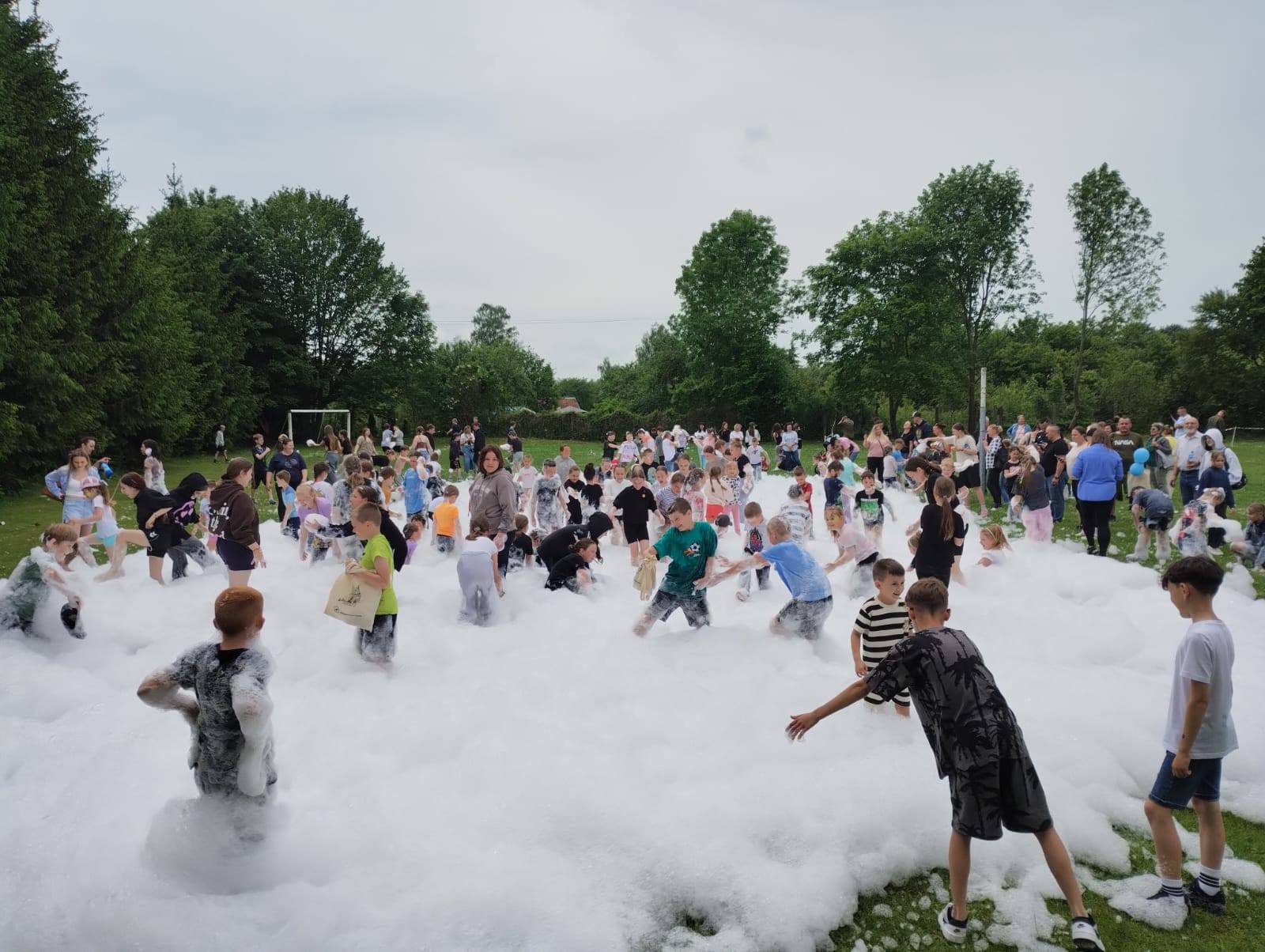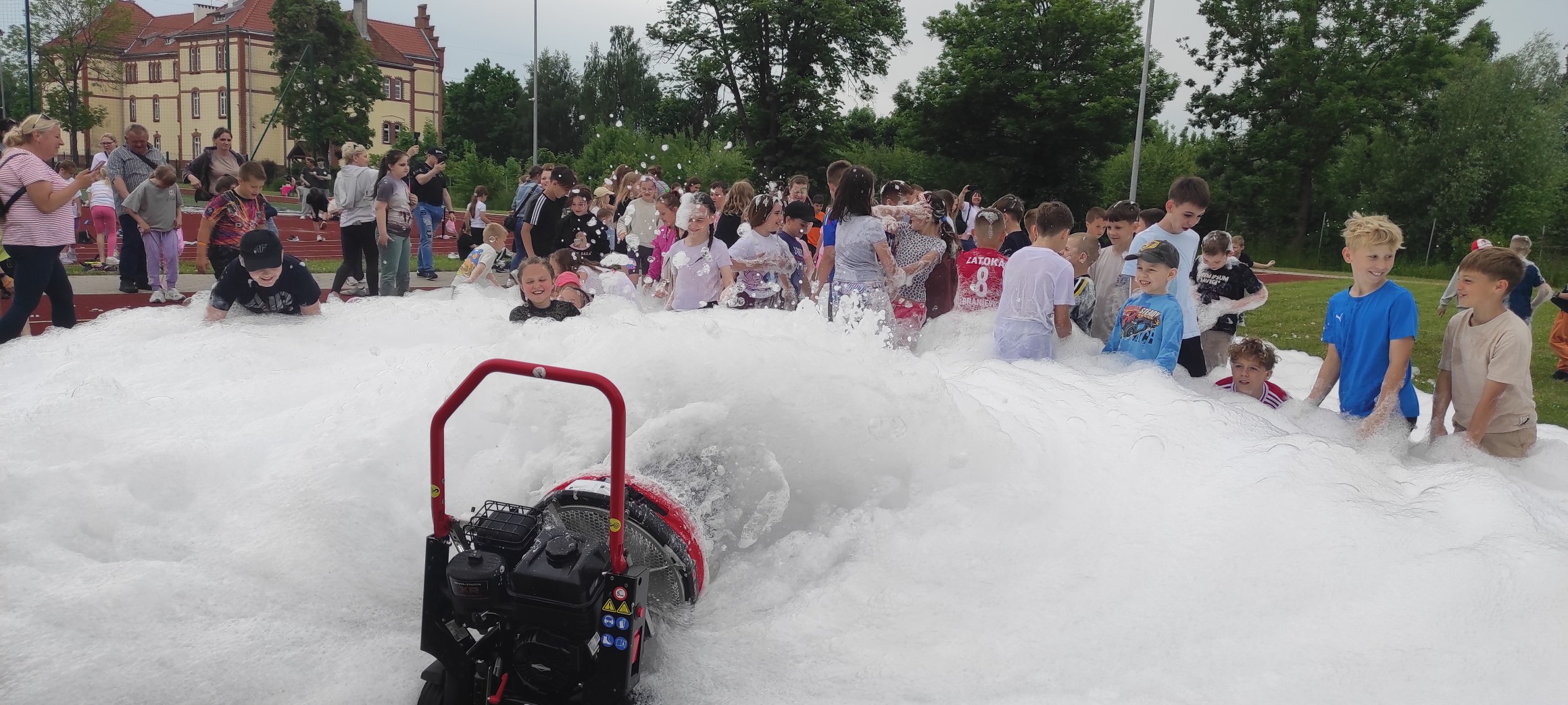 Bezpieczna piana pozwoliła dla dzieci na chwilę zabawy i uśmiechu.