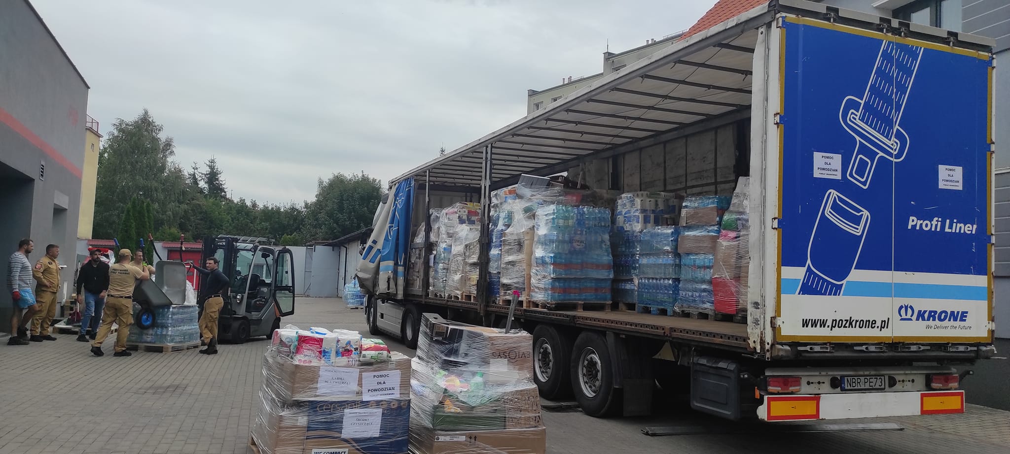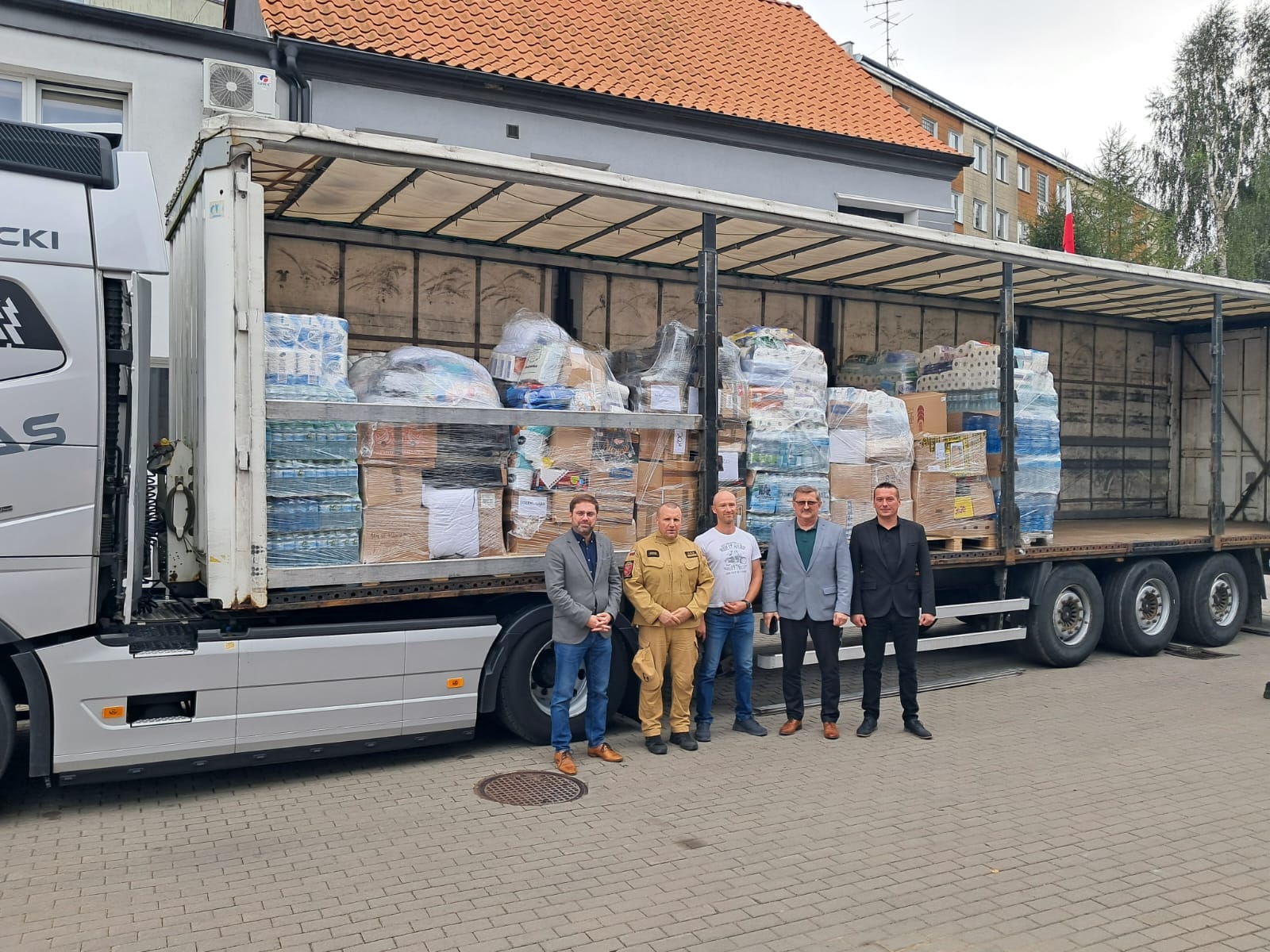 Koordynacja działań Komendy Powiatowej Państwowej Straży Pożarnej w Braniewie oraz Starostwa Powiatowego w Braniewie związanych z udzieleniem wsparcia dla poszkodowanych w tegorocznej powodzi przyniosła efekt w postaci wyjazdu transportu darów dla powodzian.