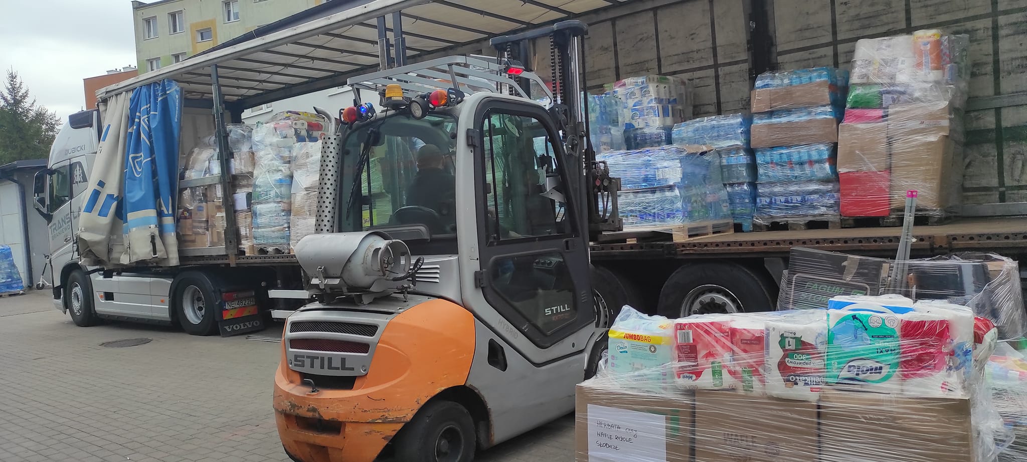 Załadowaliśmy darami dużą ciężarówkę, która zabrała ponad 20 palety różnego rodzaju produktów.