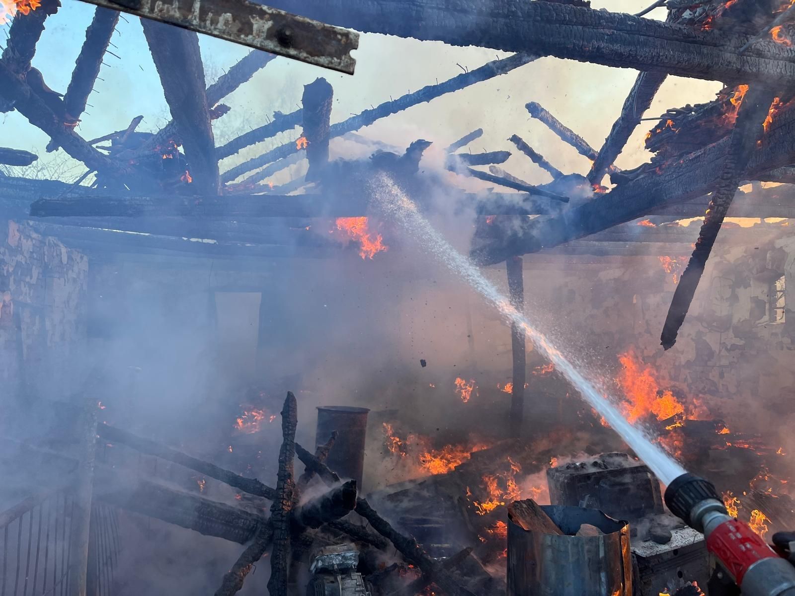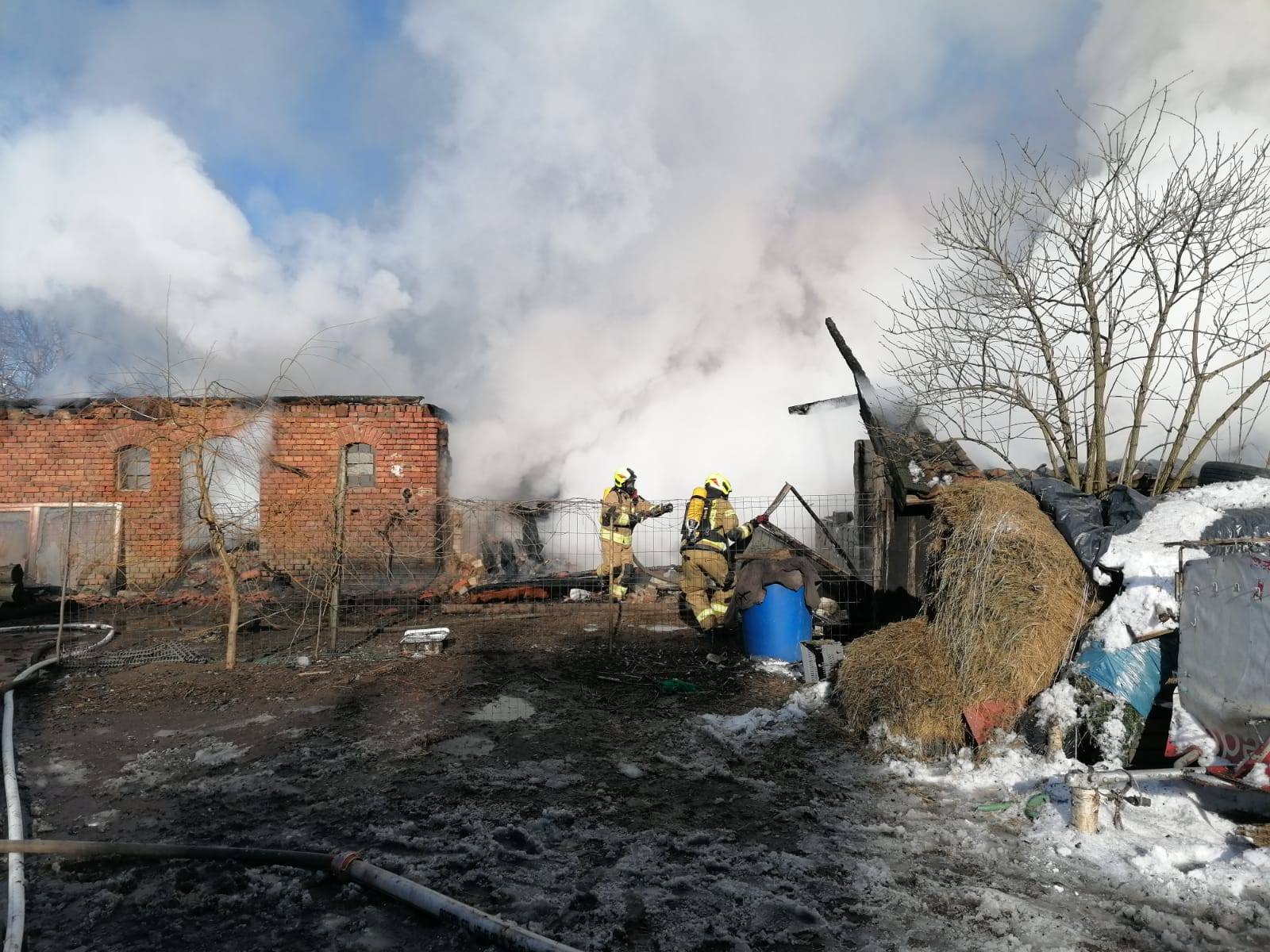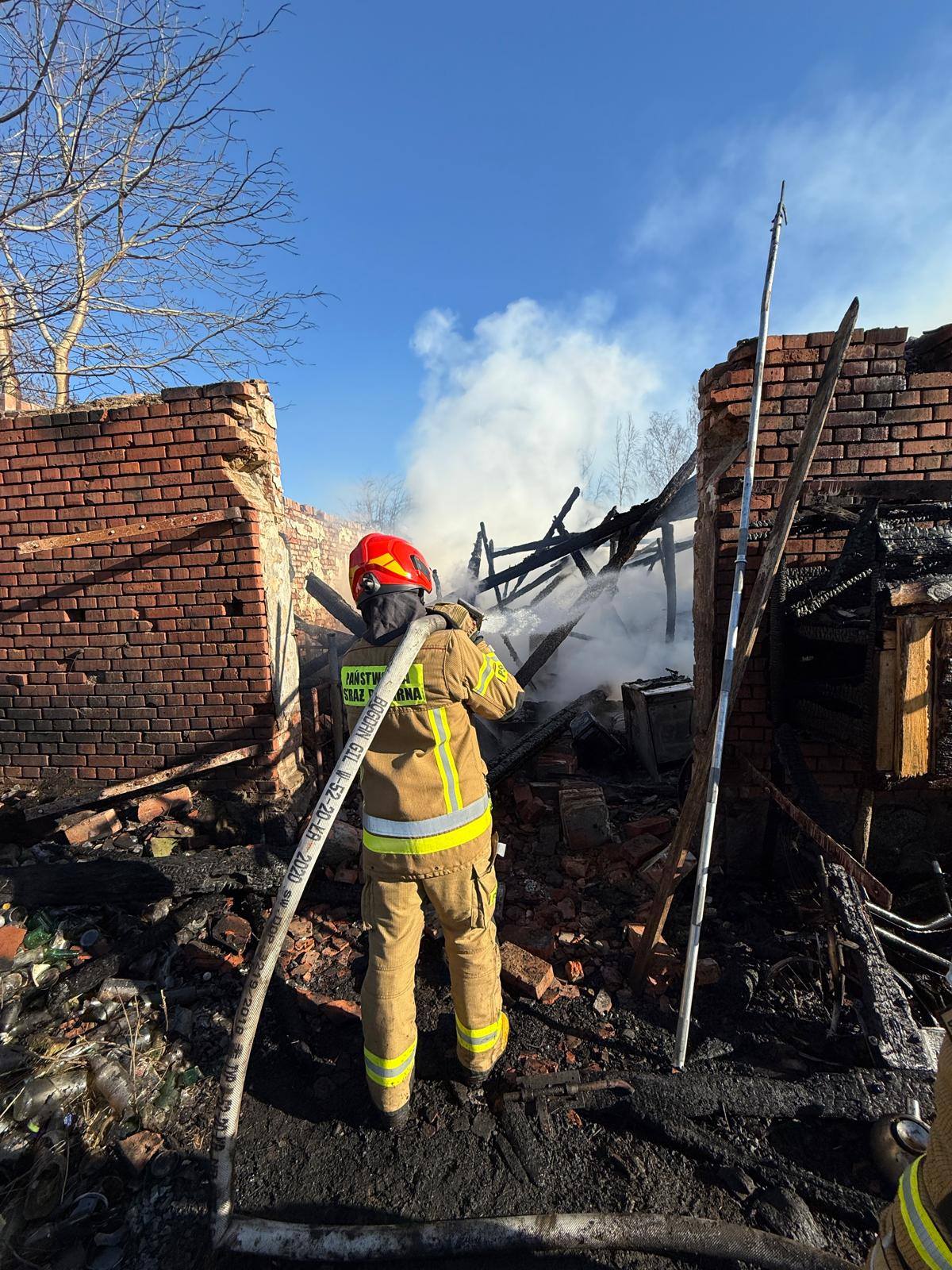 W chwili przyjazdu na miejsce pierwszych wozów strażackich ogniem objęta była cała konstrukcja budynku gospodarczego.