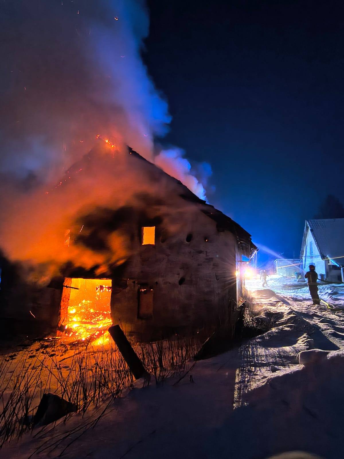 W chwili dojazdu pierwszych samochodów pożarniczych, ogniem objęta była cała konstrukcja budynku. Niska temperatura, zalegający śnieg nie ułatwiały działań gaśniczych dla przybyłych strażaków.