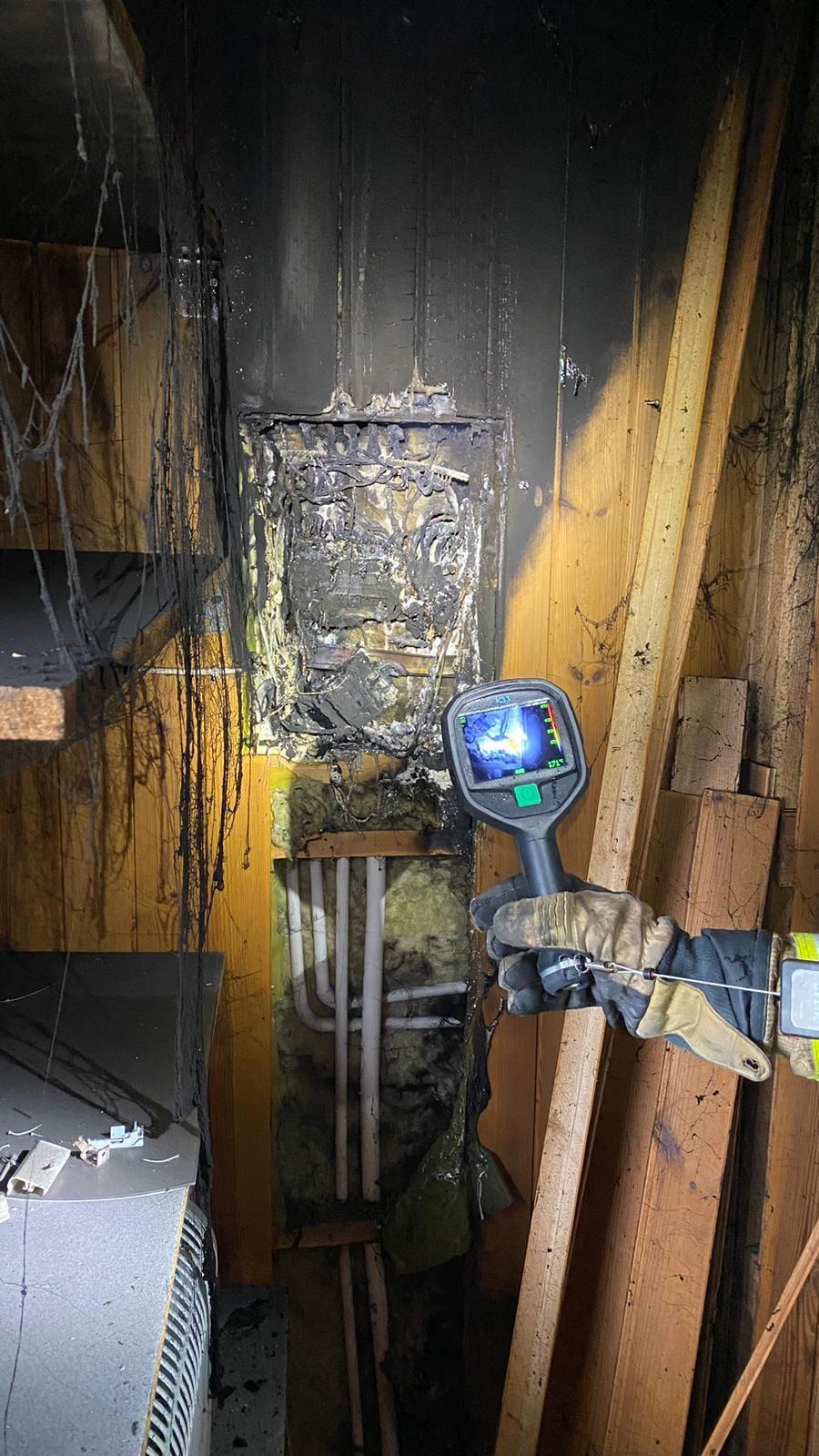 Strażacy przystąpili do prac rozbiórkowych pogorzeliska. Z wykorzystaniem kamery termowizyjnej zlokalizowali ukryte zarzewie ognia, które zostały dogaszone.