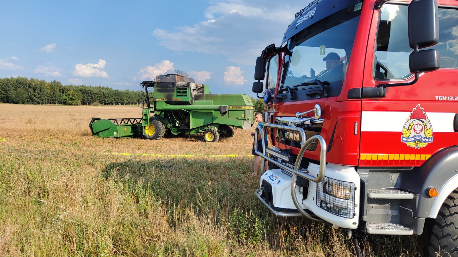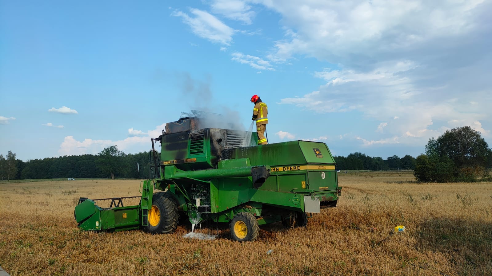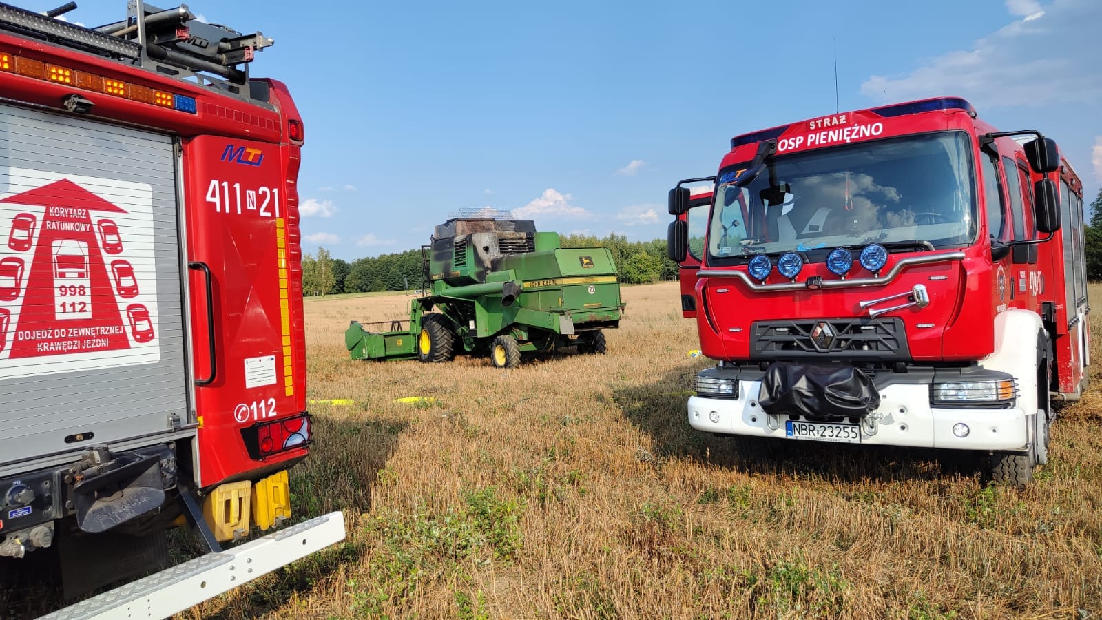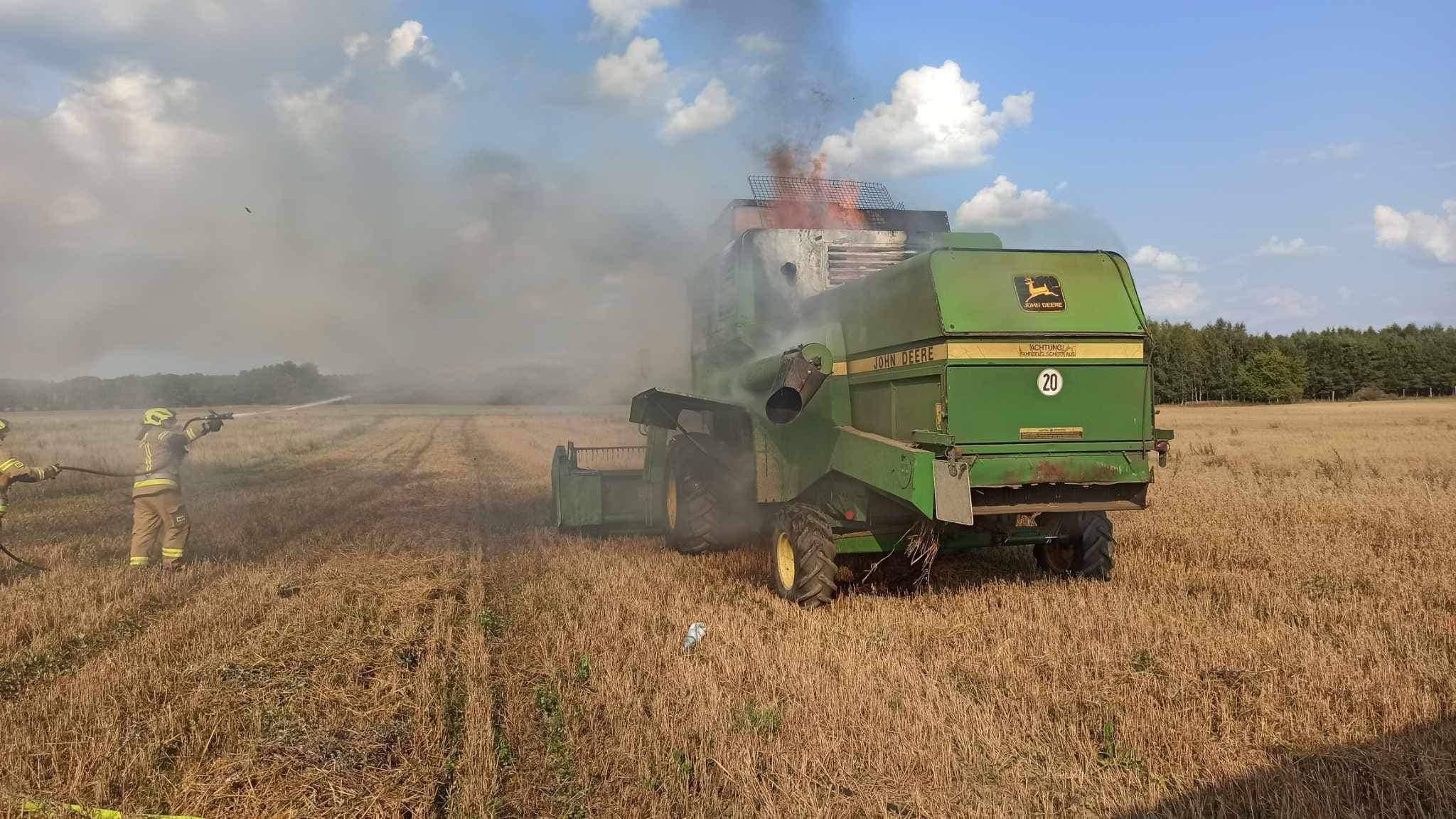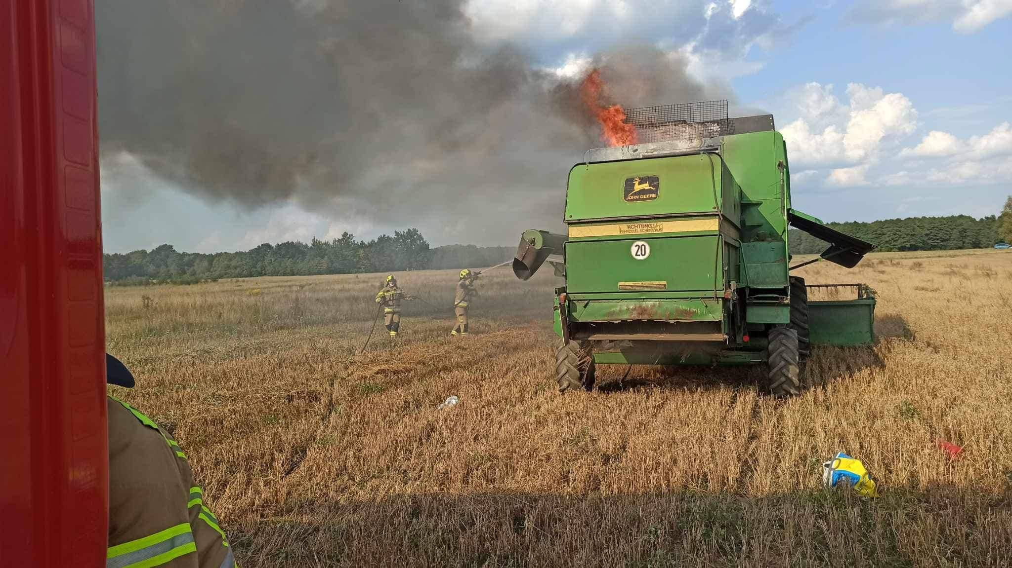 Zgłoszenie wpłynęło około godziny 16.00.Częściowo spaliła się maszyna, oraz część zebranego zboża. Na szczęście nikt nie został poszkodowany.