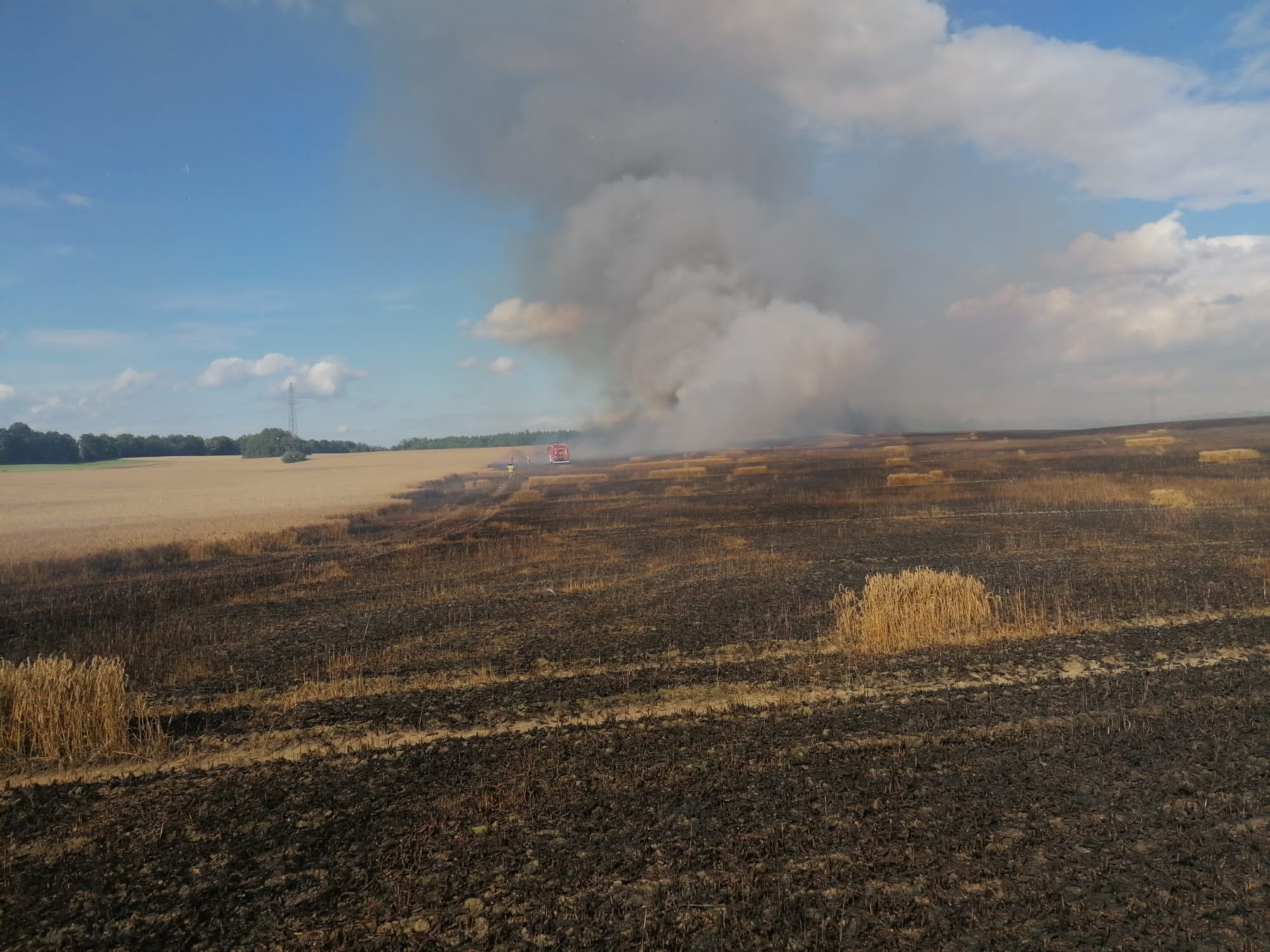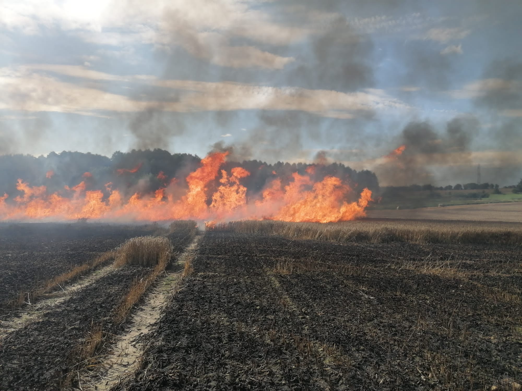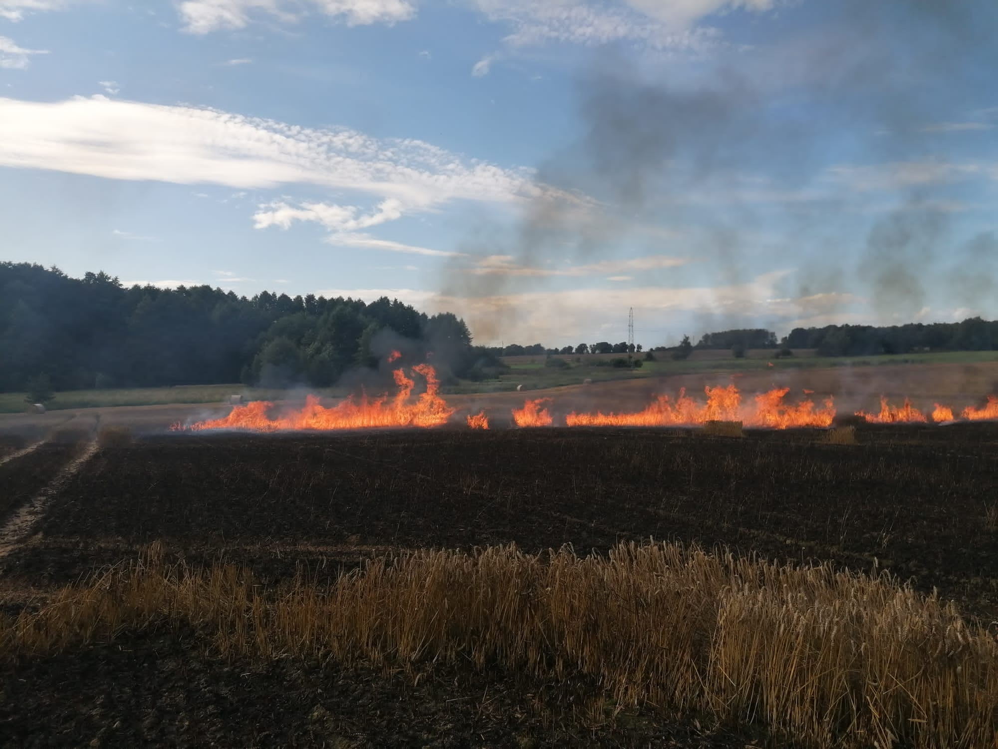 W chwili przyjazdu jednostek ochrony przeciwpożarowej ogniem objęta była prasa do słomy, rżysko o powierzchni około 1 hektara oraz blisko 38 hektarów zboża na pniu.
