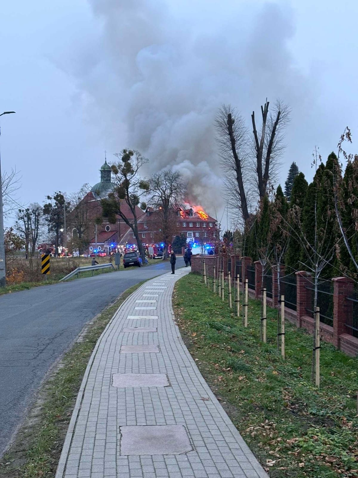 W sobotę, 9 listopada 2024r. o godzinie 6.19 służba dyżurna Stanowiska Kierowania Państwowej Straży Pożarnej w Braniewie odebrało zgłoszenie o pożarze poddasza w obiekcie Klasztoru Redemptorystów przy ulicy Świętokrzyskiej w Braniewie.