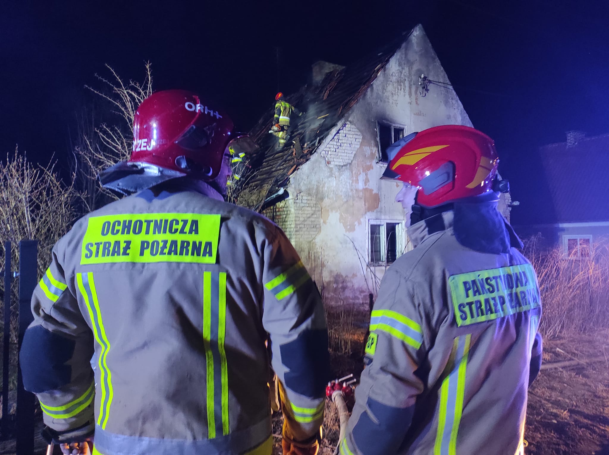 Na miejsce pożaru skierowano strażaków z Państwowej, Wojskowej i Ochotniczej Straży Pożarnej w Braniewie (łącznie pięć pojazdów Straży Pożarnej oraz funkcjonariuszy Policji). W chwili dojazdu na miejsce pierwszych jednostek pożar rozwijał się intensywnie w części poddasza a ogień wydostawał się na zewnątrz poprzez okna i przepalił część konstrukcji dachu.