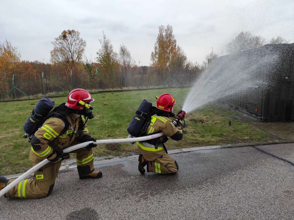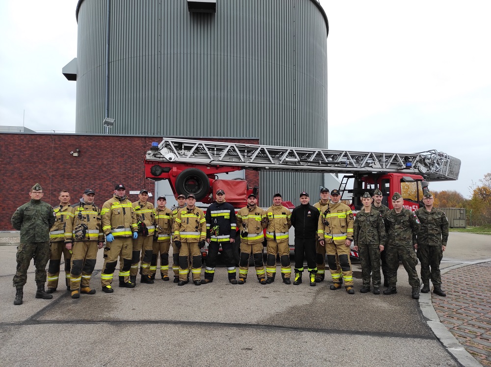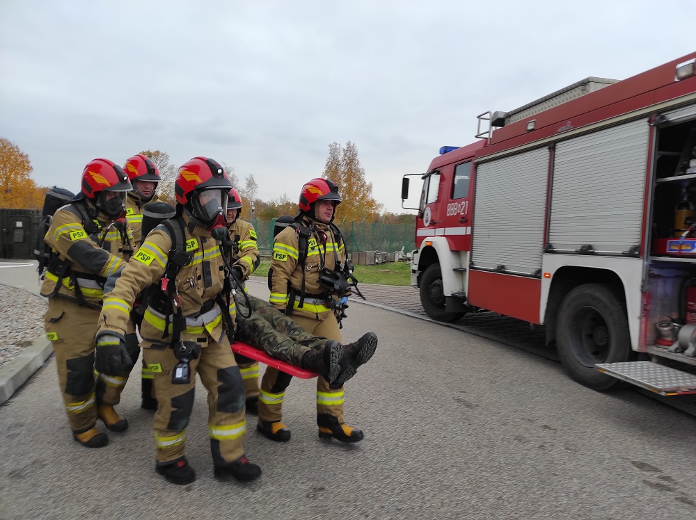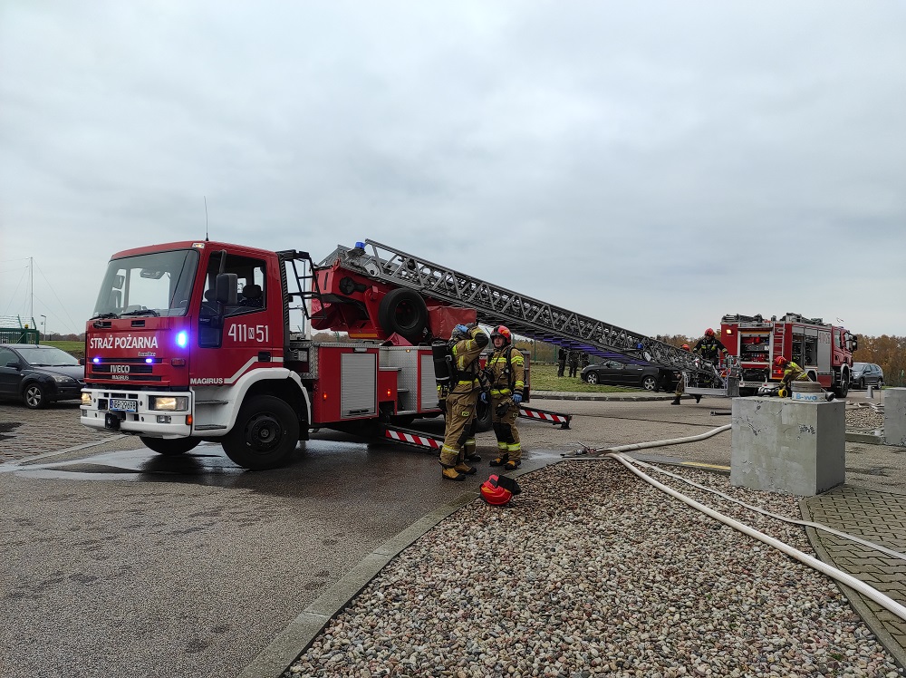 Dodatkowo na miejscu pozorowanego pożaru ratowniczy sprawdzili praktycznie możliwość wykorzystania sprzętu ratowniczego, sposób przeprowadzenia ewakuacji przez pracowników jednostki wojskowej oraz przećwiczono zasady prowadzenia łączności na miejscu akcji. W działaniach wykorzystana została autodrabina mechaniczna SCD37, której parametry umożliwiają dotarcie do najwyższych części obiektu wojskowego. Łącznie na miejsce pozorowanego pożaru skierowano cztery pojazdy ratownicze w tym 14 strażaków.