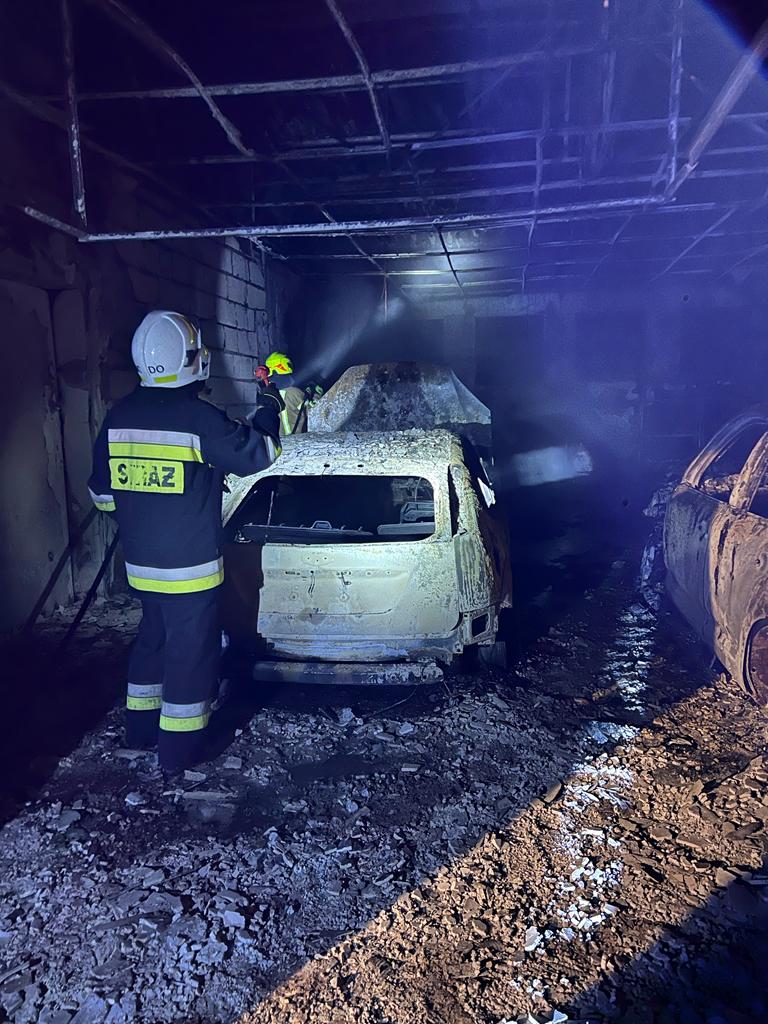 Na miejsce pożaru skierowano znaczne zasoby ratownicze. Strażacy ochotnicy z OSP Pieniężno po dotarciu na miejsce pożaru potwierdzili pożar pomieszczenia warsztatowego oraz znajdujących się wewnątrz trzech pojazdów osobowych i wyposażenia.