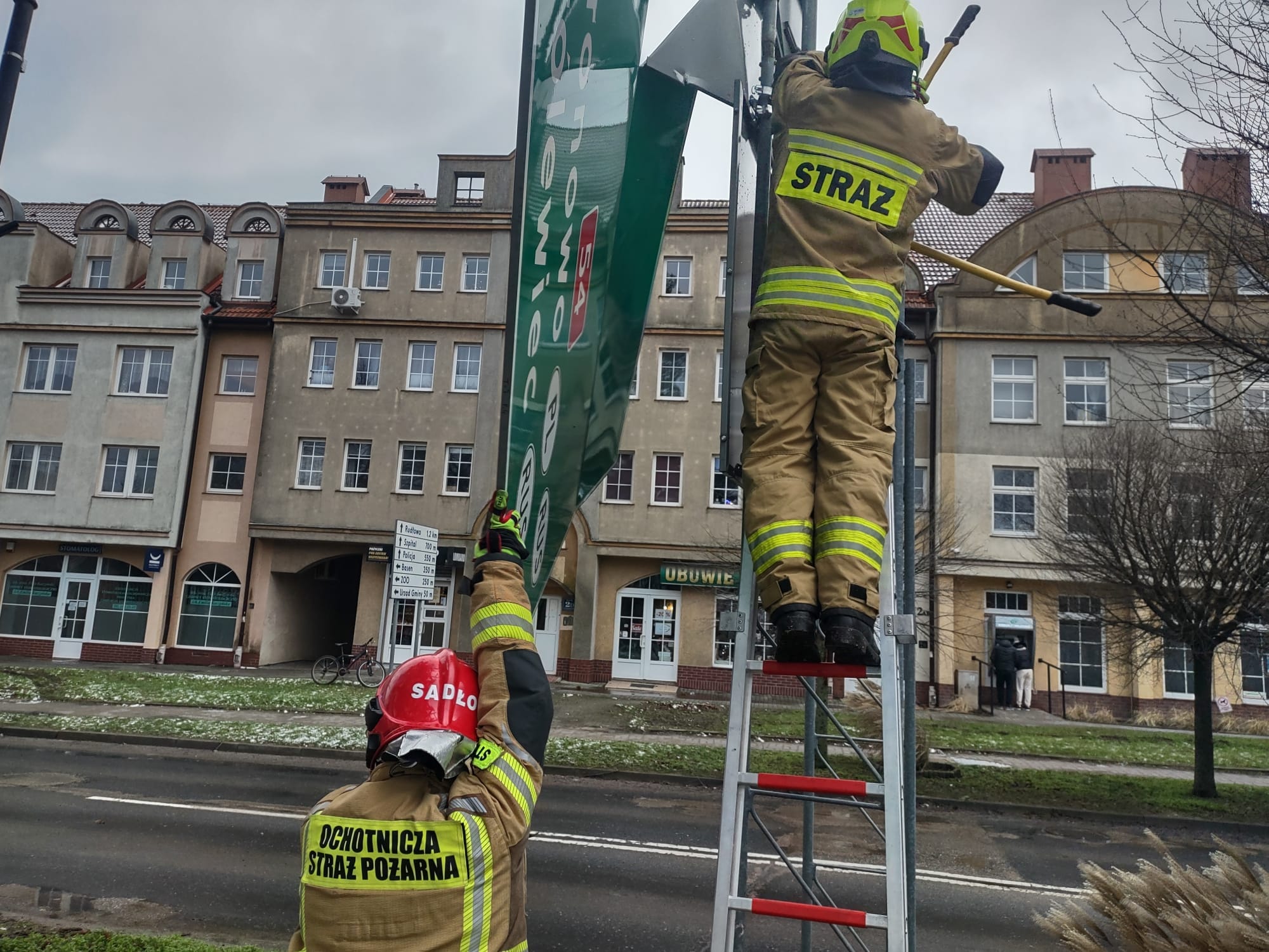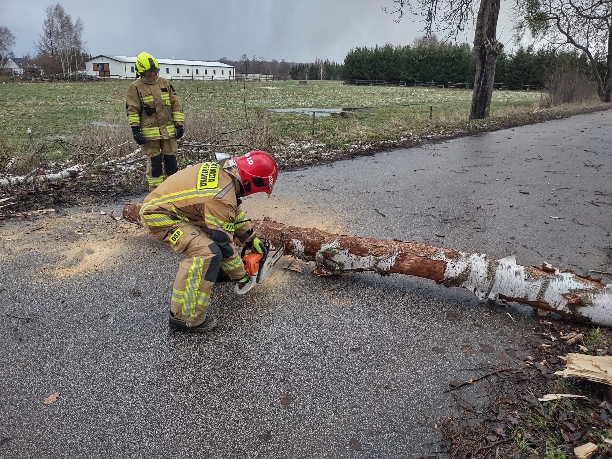 Silny wiatr łamał i przewracał drzewa powodując utrudnienia w ruchu drogowym. Liczne konary drzew leżące na drogach wymagały od kierowców szczególnej ostrożności. Zerwane reklamy, połamane tablice drogowe czy przechylony słup sygnalizacji świetlnej dla pieszych – z tym wszystkim spotkali się strażacy podczas usuwania zdarzeń.