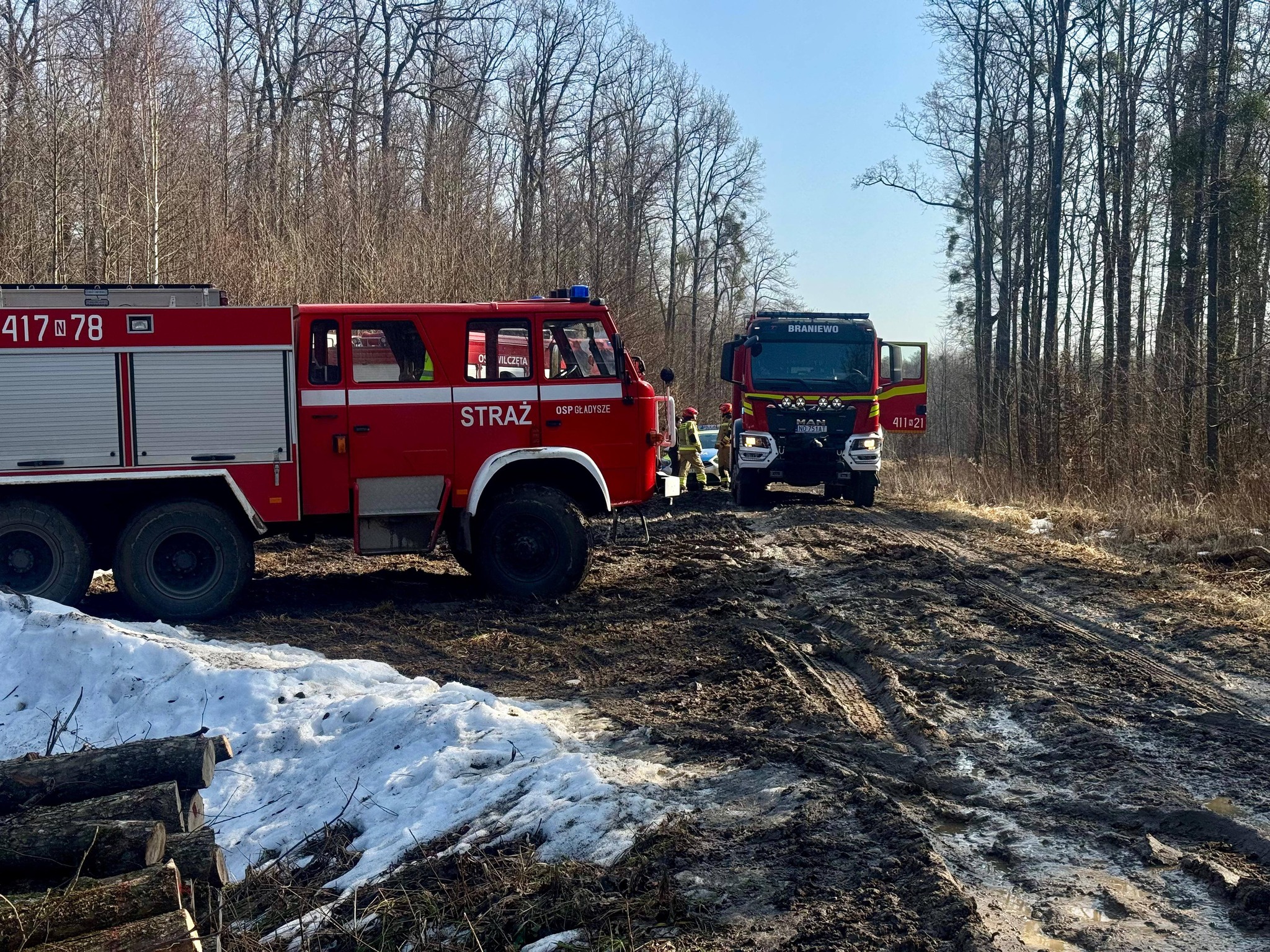 Na miejscu zdarzenia obecni byli funkcjonariusze Państwowej Straży Pożarnej w Braniewie, policjanci oraz strażacy ochotnicy z jednostek OSP Wilczęta i OSP Gładysze.