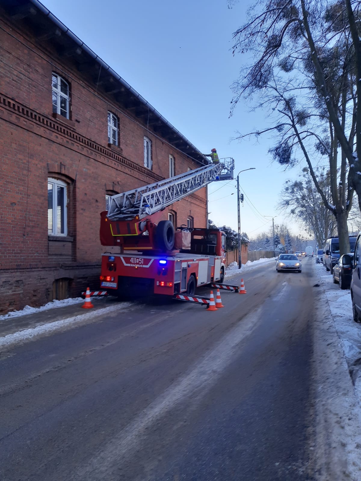 29 listopada br. strażacy z Państwowej i Wojskowej Straży Pożarnej interweniowali przy ulicy Moniuszki, gdzie usunięto wiszące sople lodowe.
