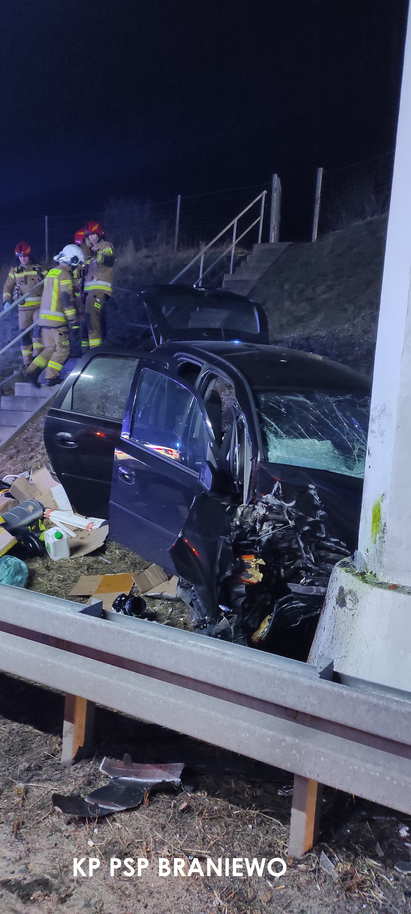 Samochód roztrzaskał się o filar wiaduktu na S 22