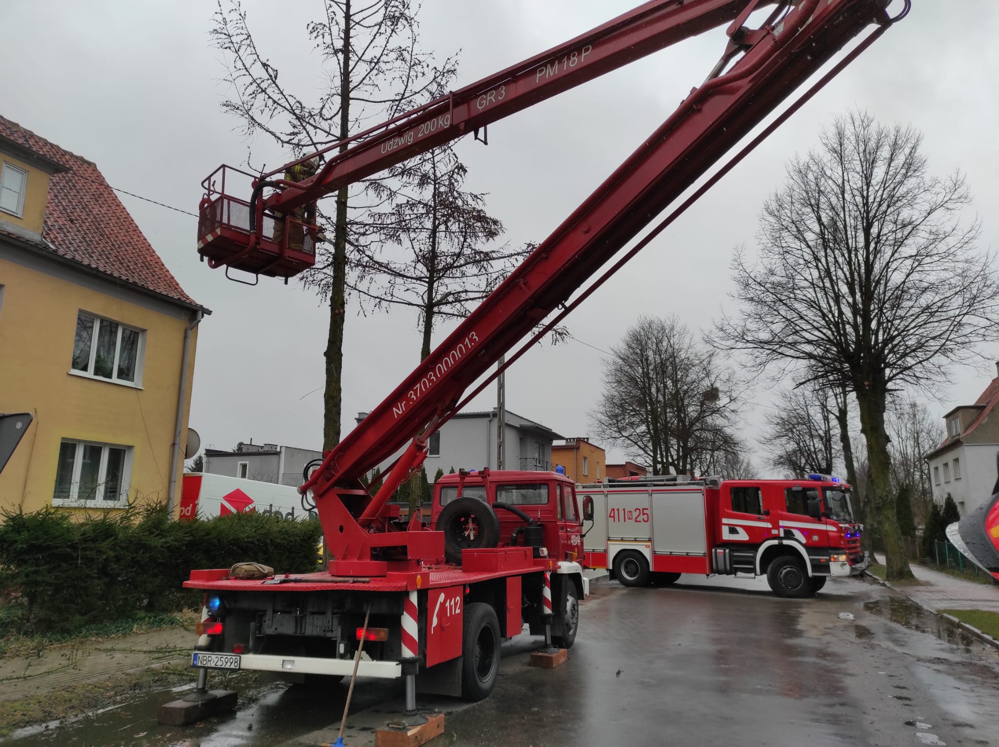19 lutego br. od godzin porannych służba dyżurna Stanowiska Kierowania Państwowej Straży Pożarnej w Braniewie odebrała kilkadziesiąt zgłoszeń związanych z usunięciem skutków wichury. Połamane drzew i konary, zatarasowane drogi i ciągi komunikacyjne, przewrócone znaki drogowe, uszkodzenia obiektów to zakres sobotnich interwencji strażaków.