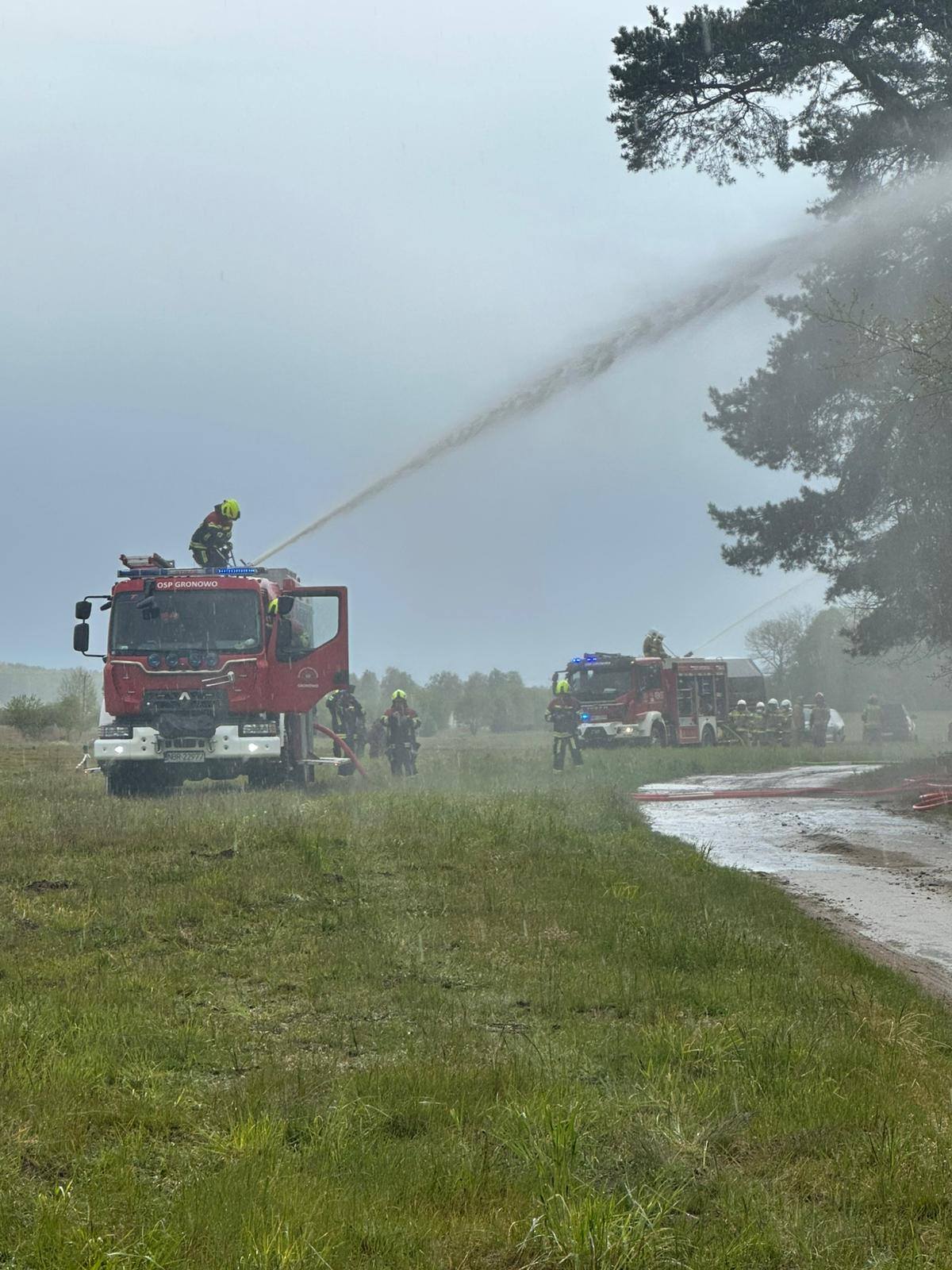 W sobotę, 17 maja 2025r na obszarze leśnym należącym do Nadleśnictwa Zaporowo strażacy Państwowej i Ochotniczej Straży Pożarnej realizowali ćwiczenia w zakresie gaszenia powierzchni leśnej oraz dostarczania wody na duże odległości.