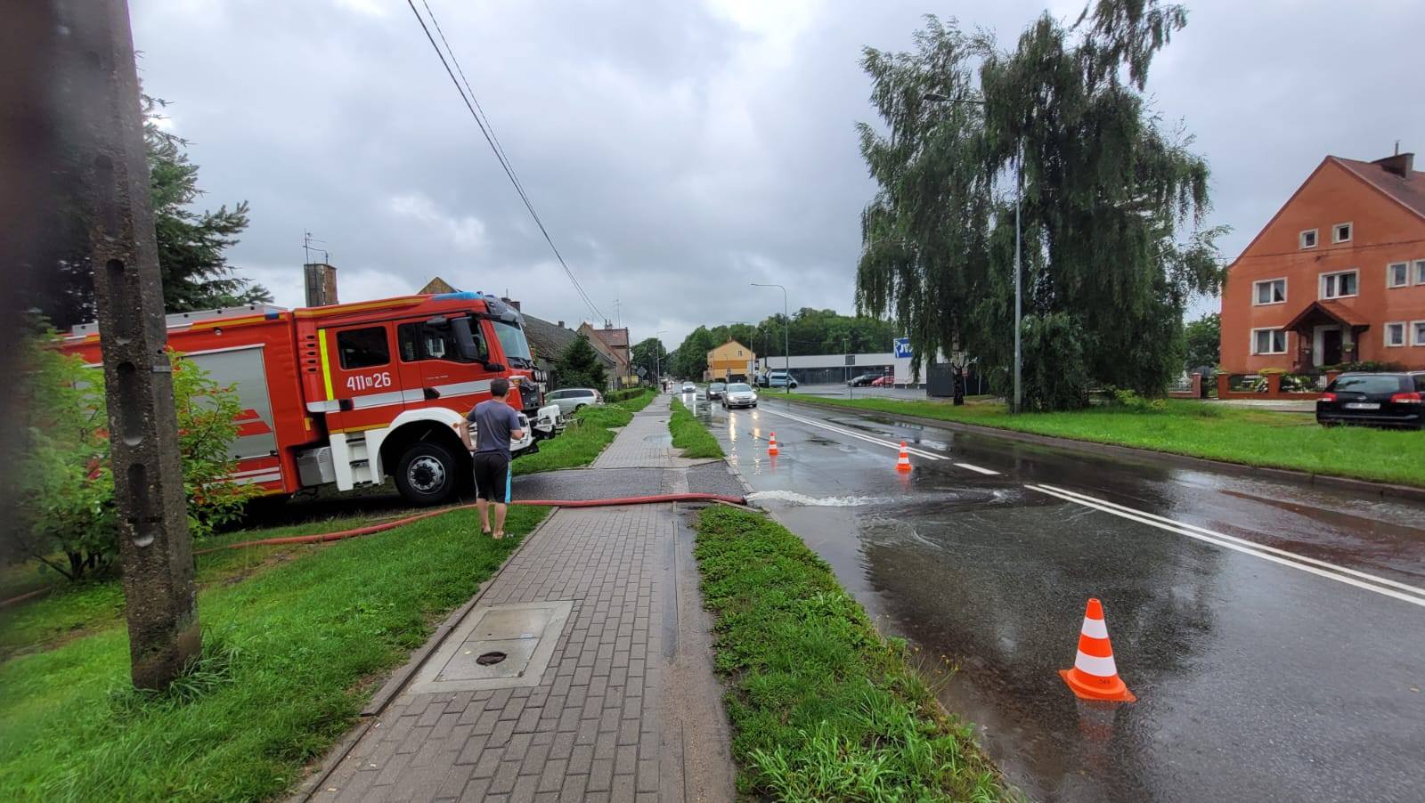 Dodatkowe siły i środki z terenu powiatu braniewskiego (pluton ratowniczy OSP) zostały skierowane do usuwania skutków lokalnych podtopień w powiecie elbląskim - miejscowość Tolkmicko.