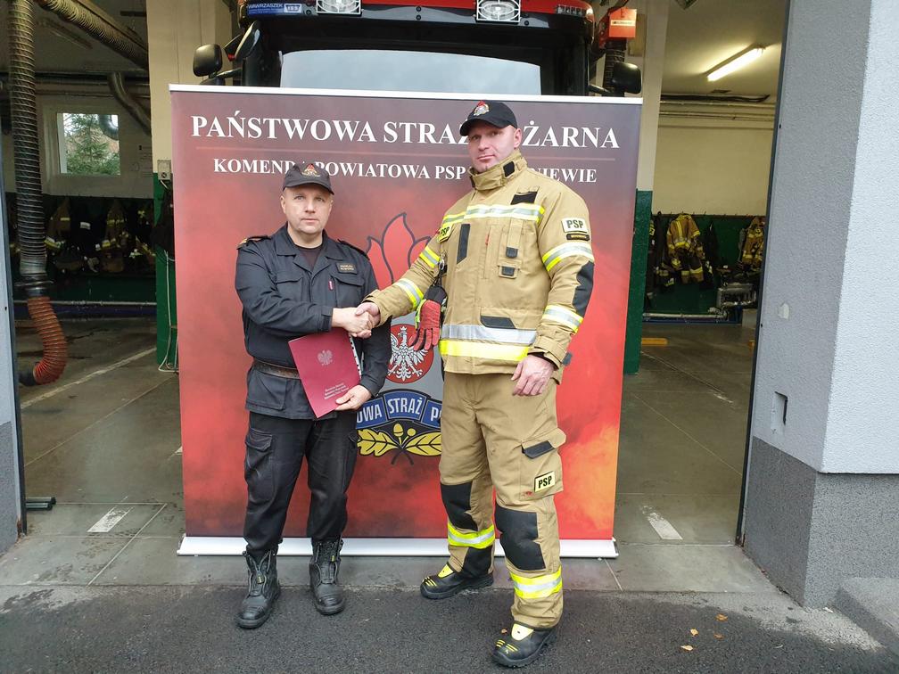 Dla nowo przyjętego strażaka życzymy powodzenia i witamy w szeregach Państwowej Straży Pożarnej.