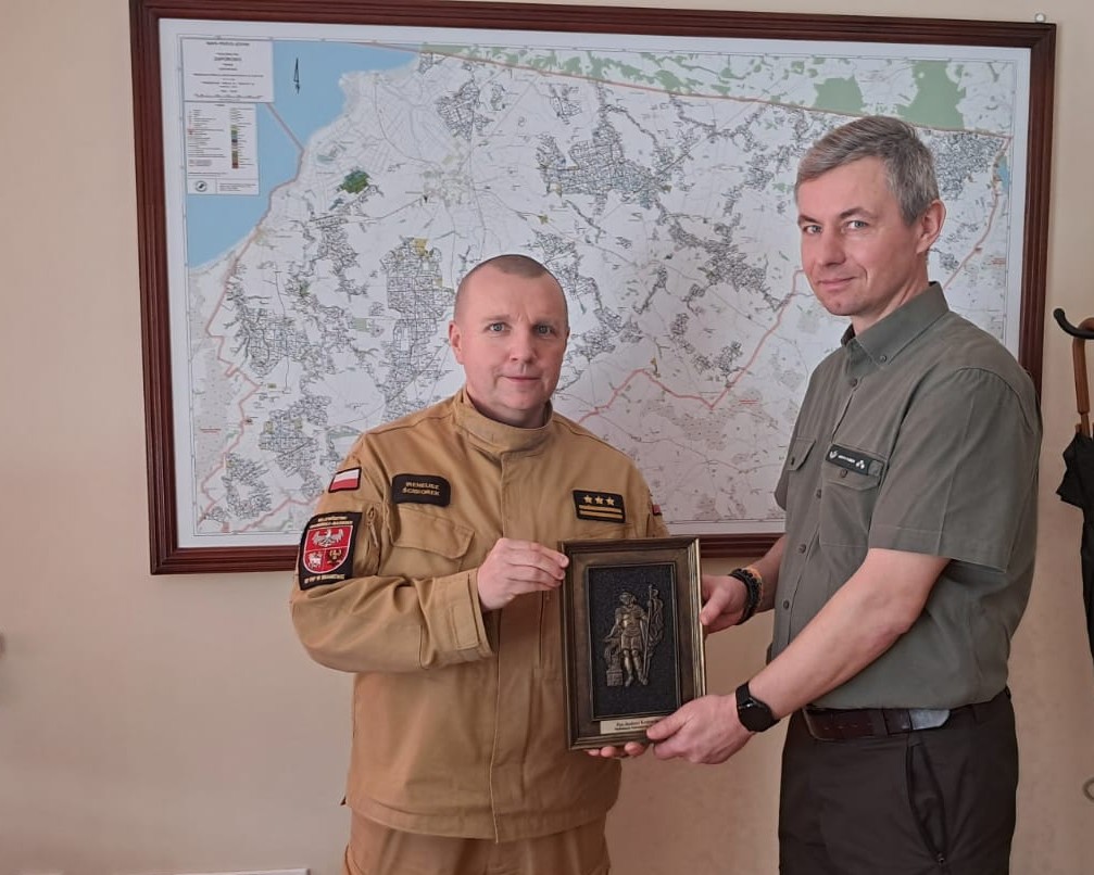 Spotkanie z Panem Andrzejem Kozłowskim Nadleśniczym Nadleśnictwa Zaporowo to okazja do wręczenia podziękowania za współpracę w minionym roku, podejmowane wspólnie inicjatywy dotyczące ochrony ppoż. oraz wspierania Państwowej i Ochotniczej Straży Pożarnej przez Lasy Państwowe.