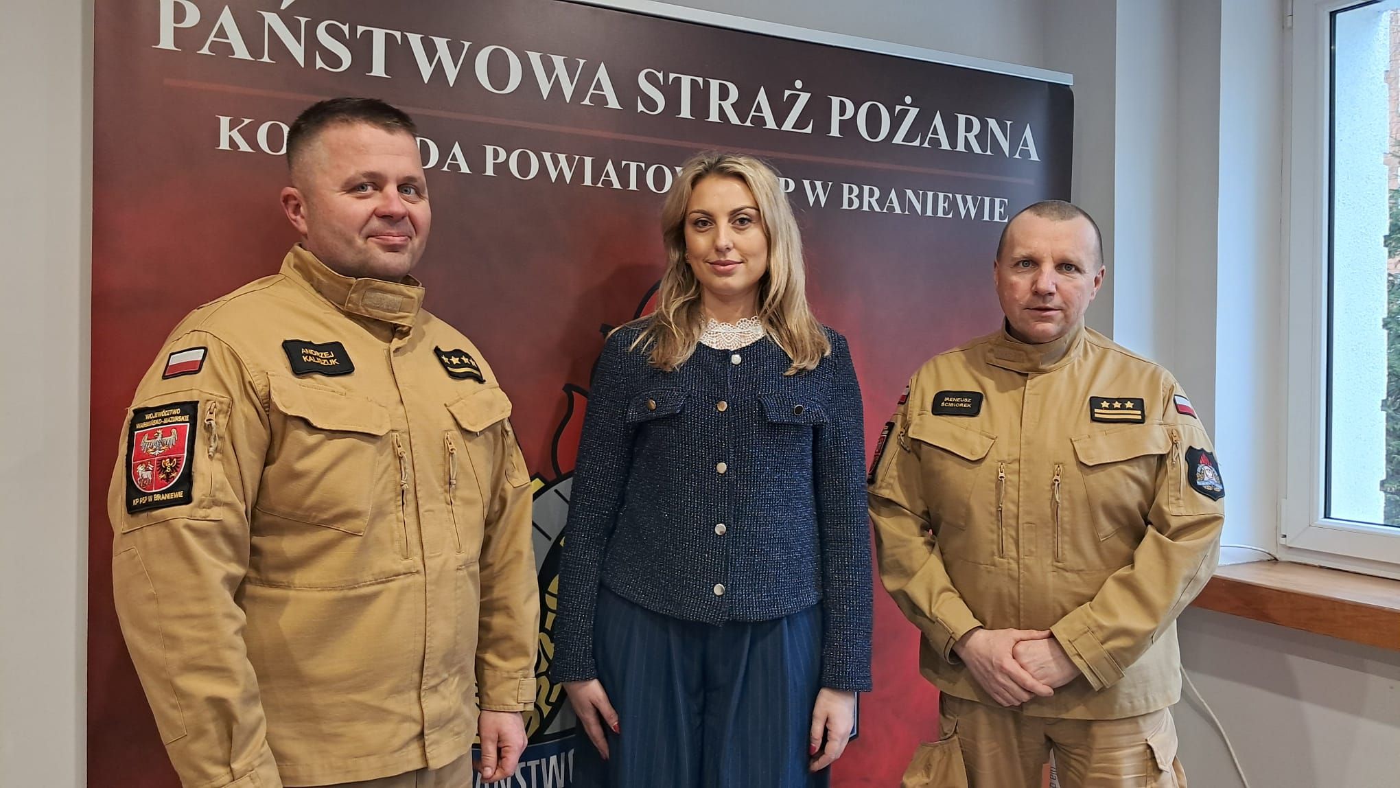 O współpracy ze strażakami Państwowej Straży Pożarnej w Braniewie w siedzibie braniewskiej jednostki PSP rozmawiała również Pani Ewelina Gierałtowska Pełnomocnik Burmistrza ds. społecznych.
