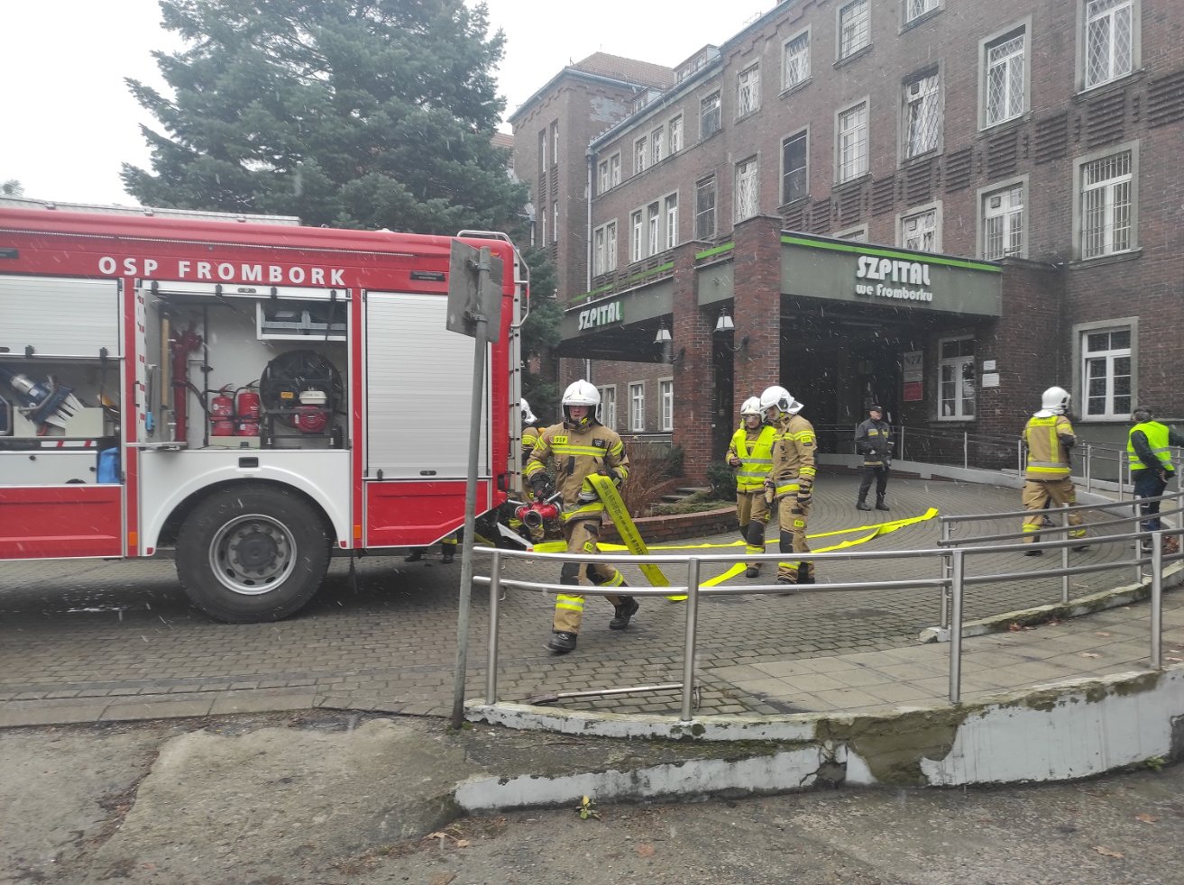 Z uwagi na silne zadymienie pracownicy szpitala rozpoczęli ewakuację osób bezpośrednio zagrożonych oraz zabezpieczyli obiekt przed dostępem osób. Jako pierwsi do działań przystąpili strażacy – ochotnicy z jednostki OSP Frombork.
