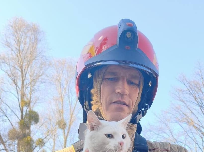 Niosą pomoc nie tylko ludziom w potrzebie ale i zwierzętom. Przestraszony kot skorzystał z pomocy strażaka i został przekazany dla właściciela.