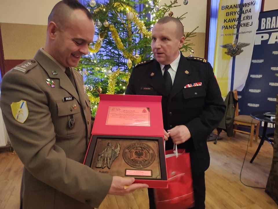 Oczywiście nie zabrakło życzeń przekazanych dla żołnierzy Braniewskiej Brygady od braniewskich strażaków PSP.