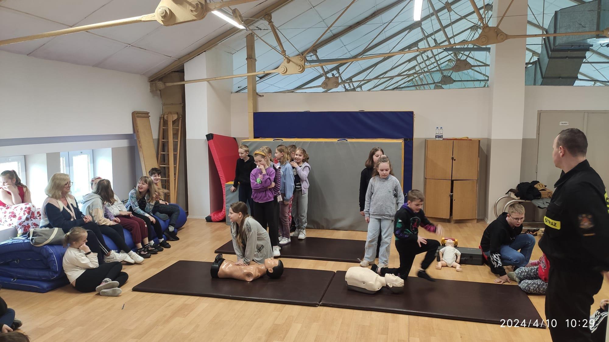 Funkcjonariusze dokładnie wytłumaczyli i zademonstrowali jak należy zachować się w wypadku nagłego zatrzymania krążenia oraz w pozostałych stanach wymagających pomocy drugiej osoby. Młodzież mogła również spróbować swoich sił i poćwiczyć resuscytację pod okiem doświadczonych strażaków, w tym przypadku również ratowników medycznych.
