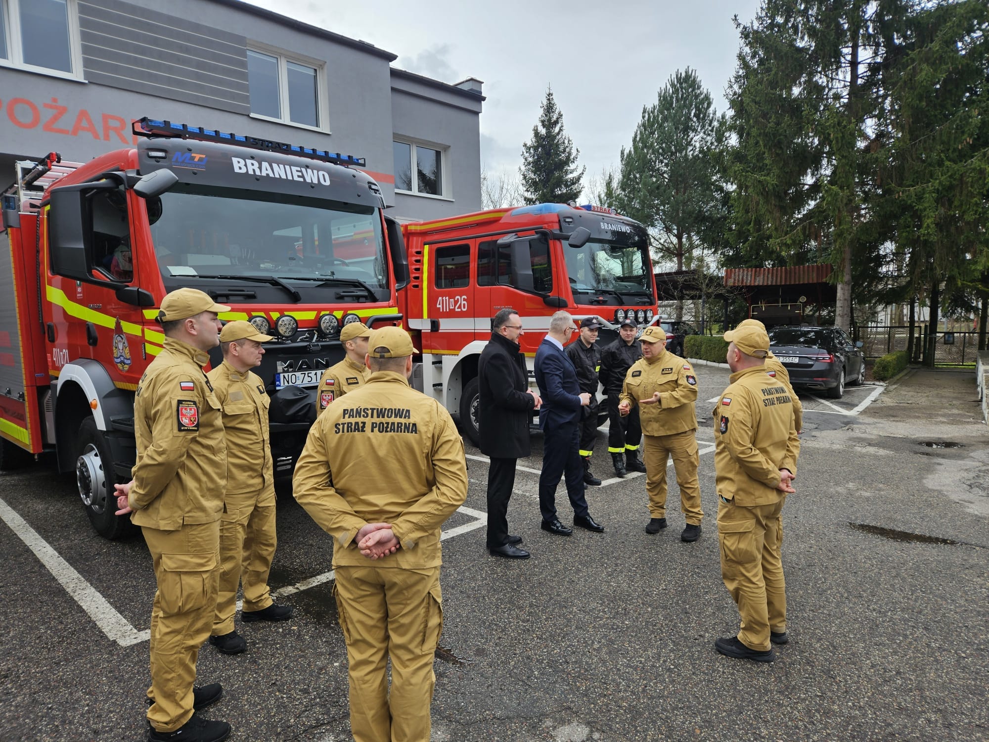 Wizyta to również nawiązanie do odprawy rocznej braniewskiej komendy PSP. Wojewodę, któremu towarzyszył Burmistrz miasta Braniewa Tomasz Sielicki przywitał st. bryg. Ireneusz Ścibiorek Komendant Powiatowy Państwowej Straży Pożarnej w Braniewie. Głównym celem wizyty Wojewody Warmińsko – Mazurskiego było zapoznanie się z warunkami pełnienia służby przez strażaków Państwowej Straży Pożarnej oraz wyposażeniem stanowiącym narzędzia do działań ratowniczych, do których są dysponowanie ratownicy.
