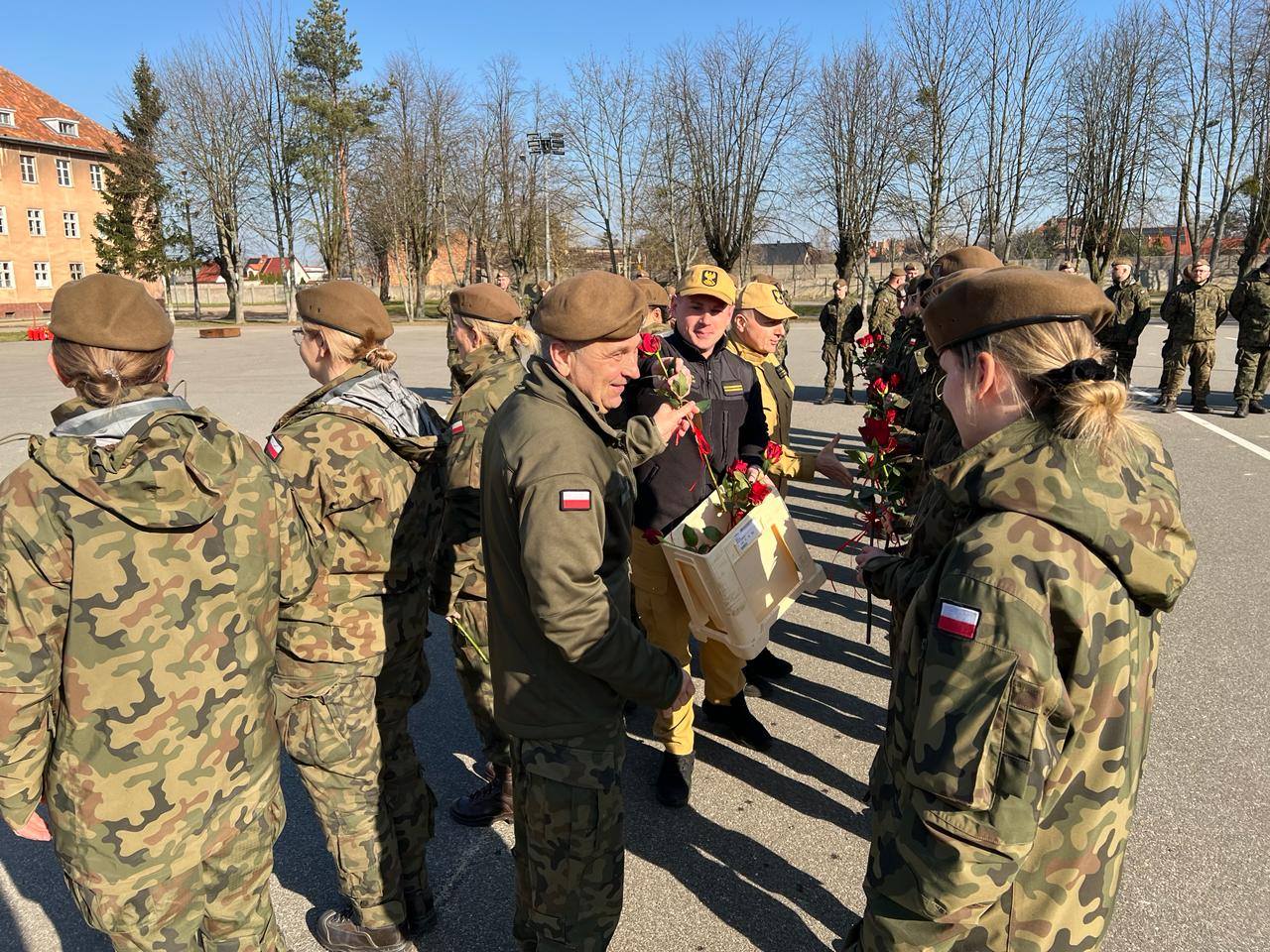 Przed rozpoczęciem zajęć Dowódca 43 Batalionu Obrony Pogranicza w Braniewie ppłk Adam Książak oraz Komendant Powiatowy PSP w Braniewie st. bryg. Ireneusz Ścibiorek wspólnie wręczyli dla Pań służących w WOT symboliczne kwiaty z okazji Dnia Kobiet.