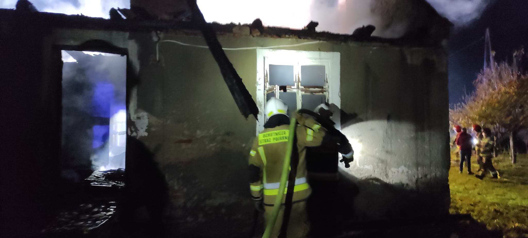 Strażacy obecni na miejscu pożaru oprócz gaszenia ognia, udzielili również pomocy medycznej dla jednego z lokatorów, który uległ poparzeniu.
