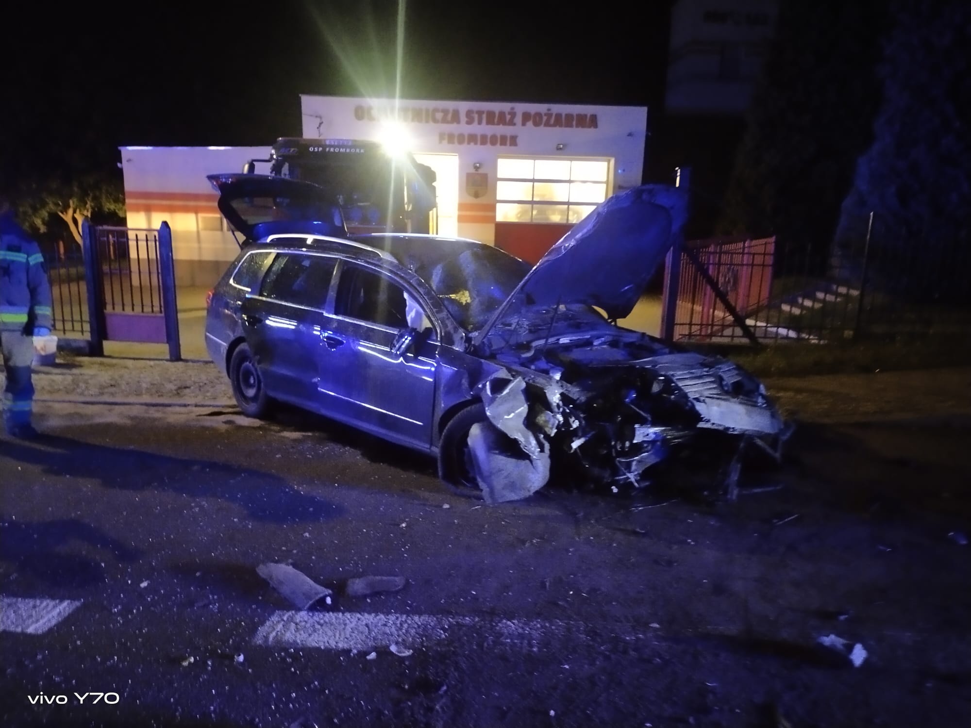 Do zdarzenia doszło we Fromborku przy ulicy Braniewskiej (droga wojewódzka nr 504). Kierujący volkswagenem stracił panowanie nad pojazdem, uderzył w znaki drogowe i zatrzymał się w pobliżu ogrodzenia Ochotniczej Straży Pożarnej we Fromborku. Autem podróżowała jedna osoba.