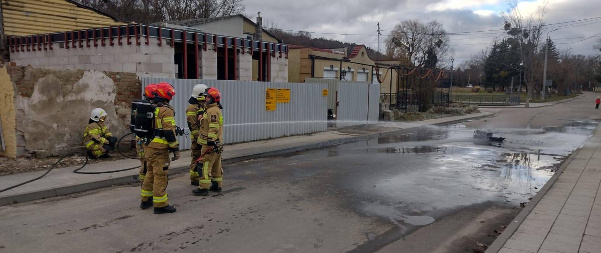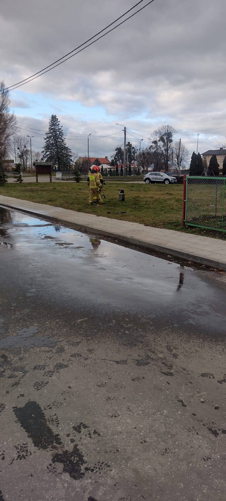Obecni na miejscu strażacy dokonali schłodzenia butli, sprawdzili temperaturę butli oraz zabezpieczyli miejsce zdarzenia.