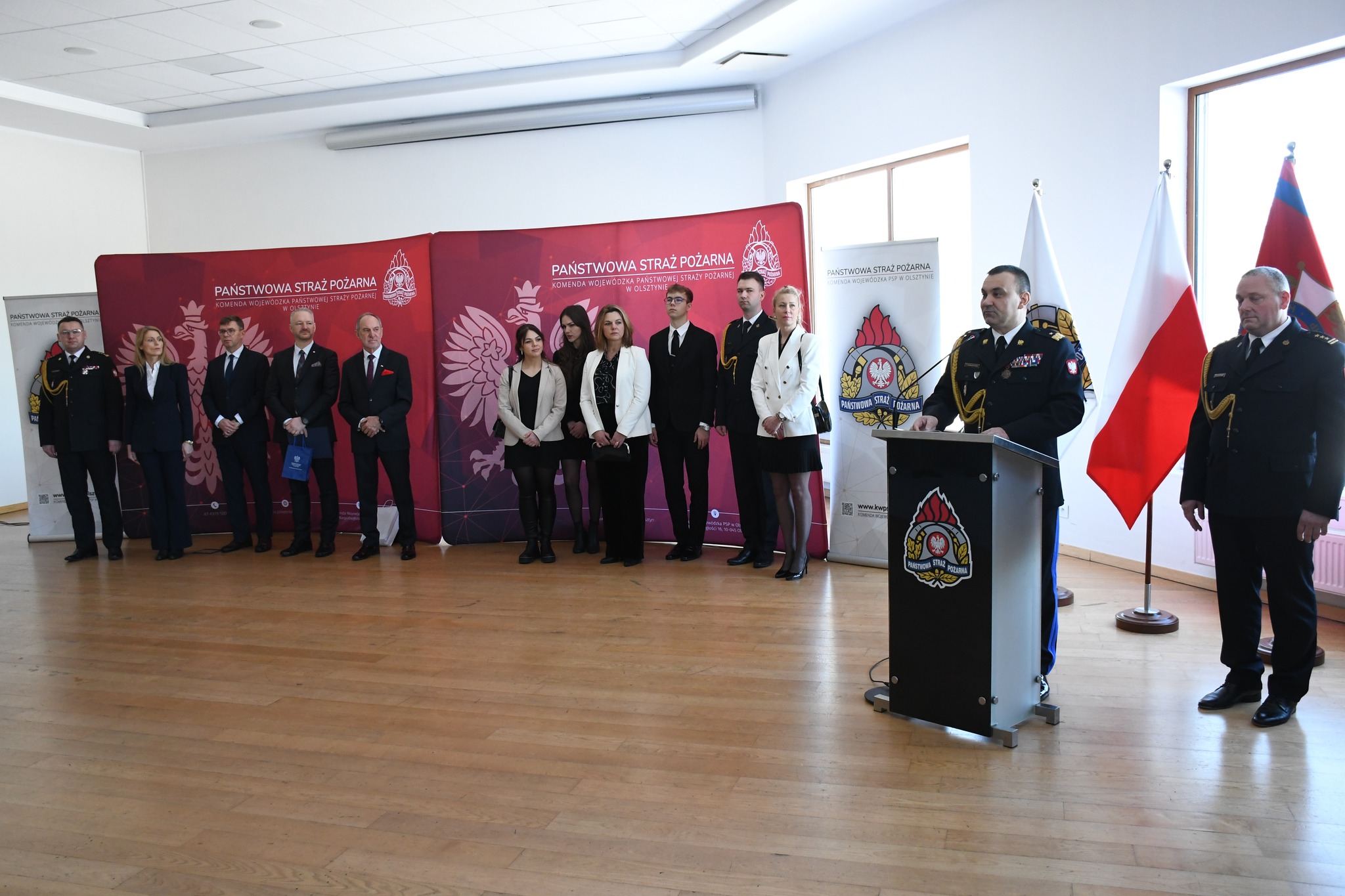 W Olsztynie odbyła się z tej okazji uroczysta zbiórka, na której w symboliczny sposób nadbryg. Tomasz Komoszyński pożegnał się ze Sztandarem Komendy Wojewódzkiej PSP i zdał obowiązki Warmińsko-Mazurskiego Komendanta Wojewódzkiego PSP, a także przyjął meldunek st. bryg. Adama Jastrzębskiego o zdaniu obowiązków Zastępcy Komendanta Wojewódzkiego PSP.