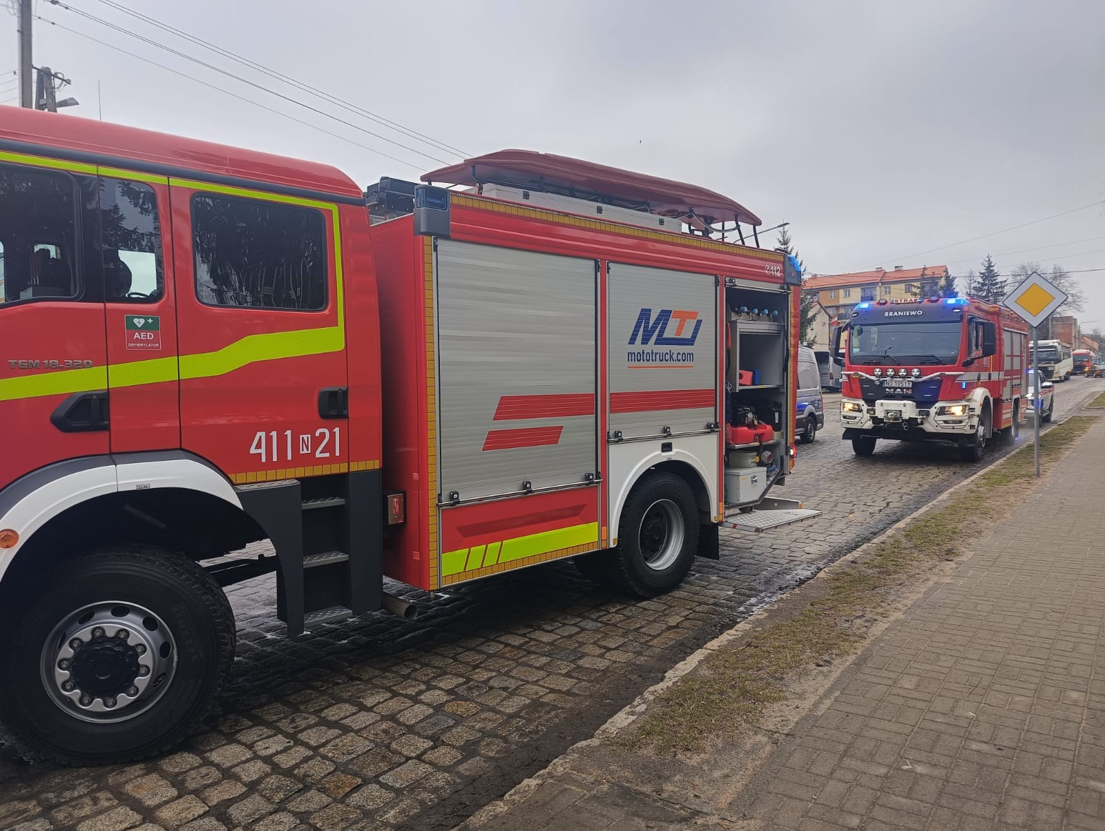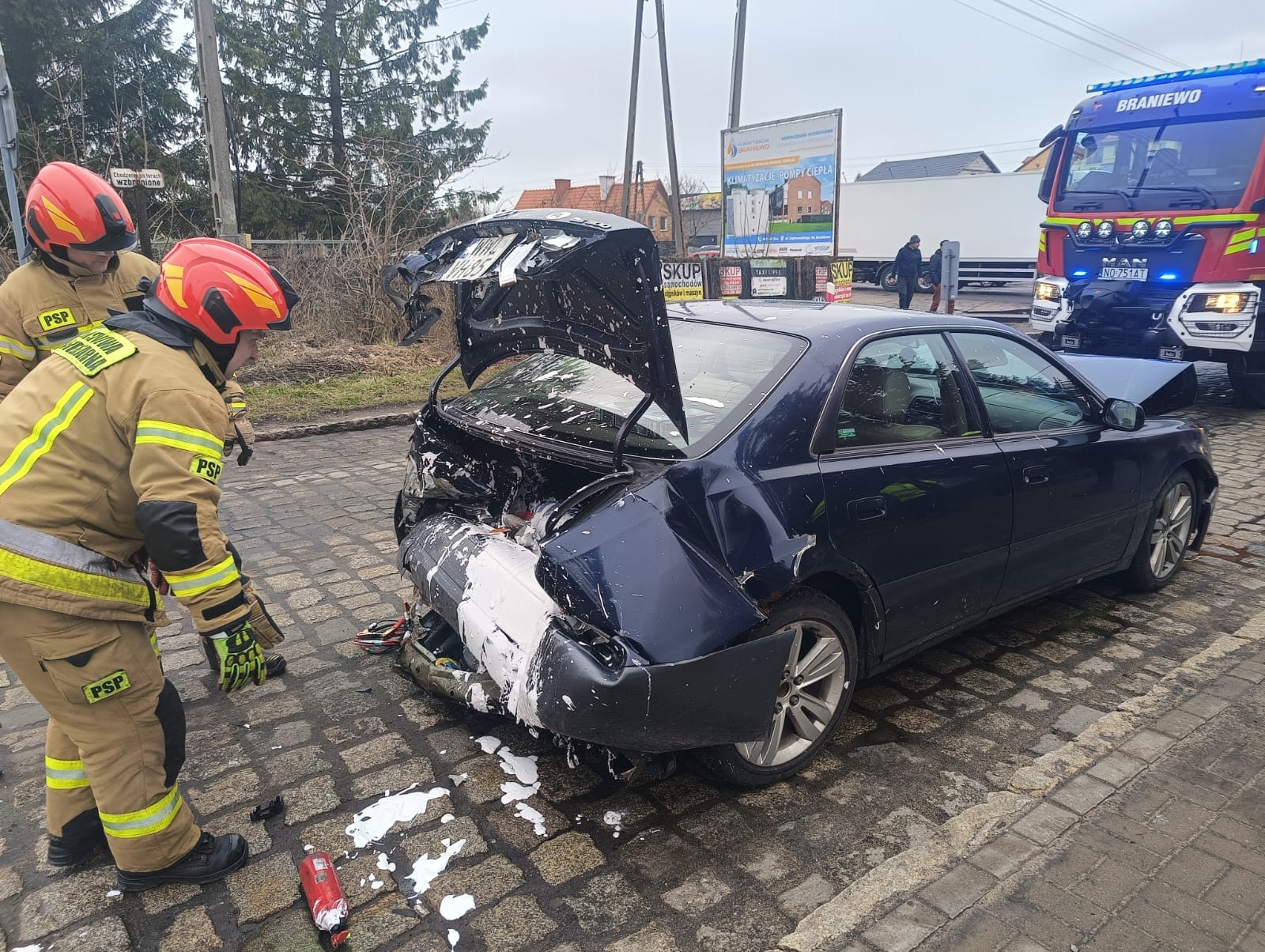 12 marca br. o godz.13:25 braniewscy strażacy otrzymali zgłoszenie o zdarzeniu drogowym z udziałem dwóch pojazdów osobowych oraz auta ciężarowego. Do zdarzenia doszło na przejeździe kolejowym w Braniewie przy ulicy Sikorskiego.
