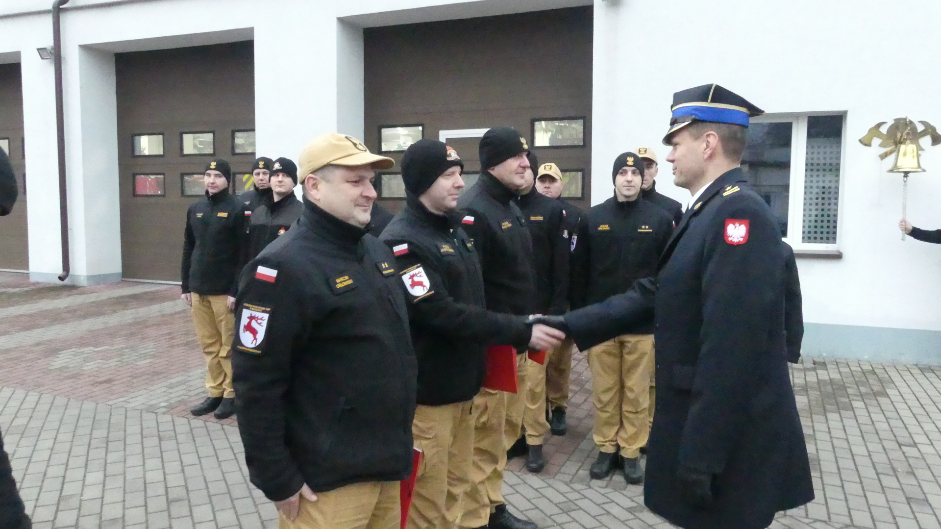 31 grudnia 2024r. na terenie Komendy Powiatowej PSP w Brodnicy odbyła się uroczysta zbiórka, podczas której st. kpt. mgr Krzysztof Natucki Komendant Powiatowy PSP w Brodnicy, w obecności swojego zastępcy mł. bryg. mgr inż. Roberta Czarneckiego dokonał wręczenia decyzji o awansach na wyższe stanowiska służbowe.
