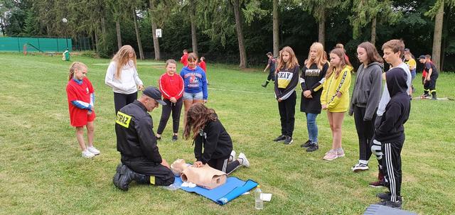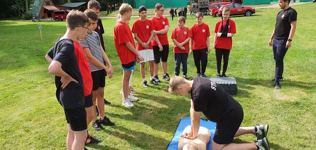 Wypoczywająca na obozie młodzież MDP, miała możliwość zapoznania się z technikami ratowniczymi: podjęcie osoby tonącej z użyciem łodzi ratunkowej, ewakuacja na brzeg oraz prowadzenie resuscytacji krążeniowo oddechowej przy pomocy fantoma.